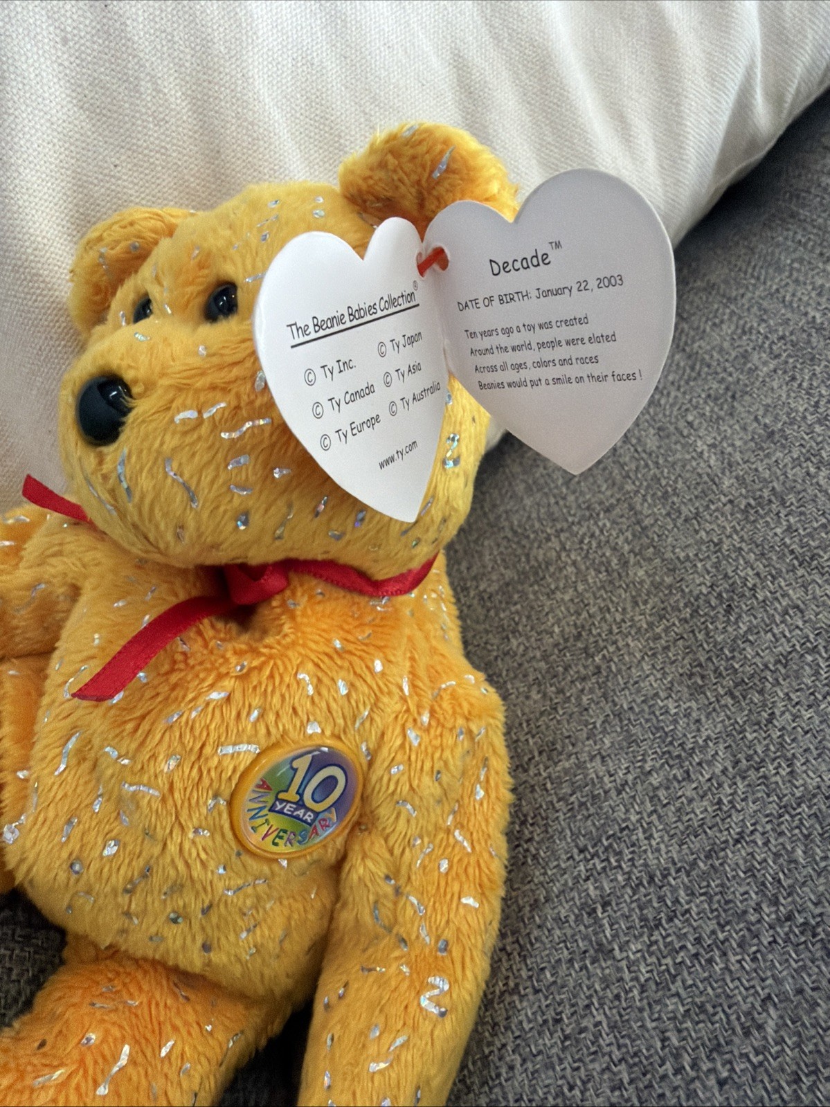 TY Beanie Baby 2003 Decade the Bear 10th Anniversary Gold PE