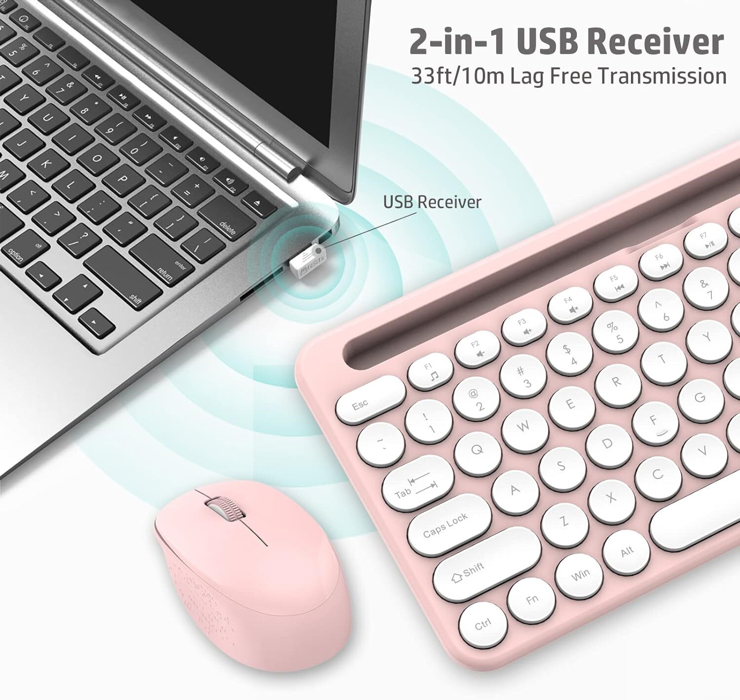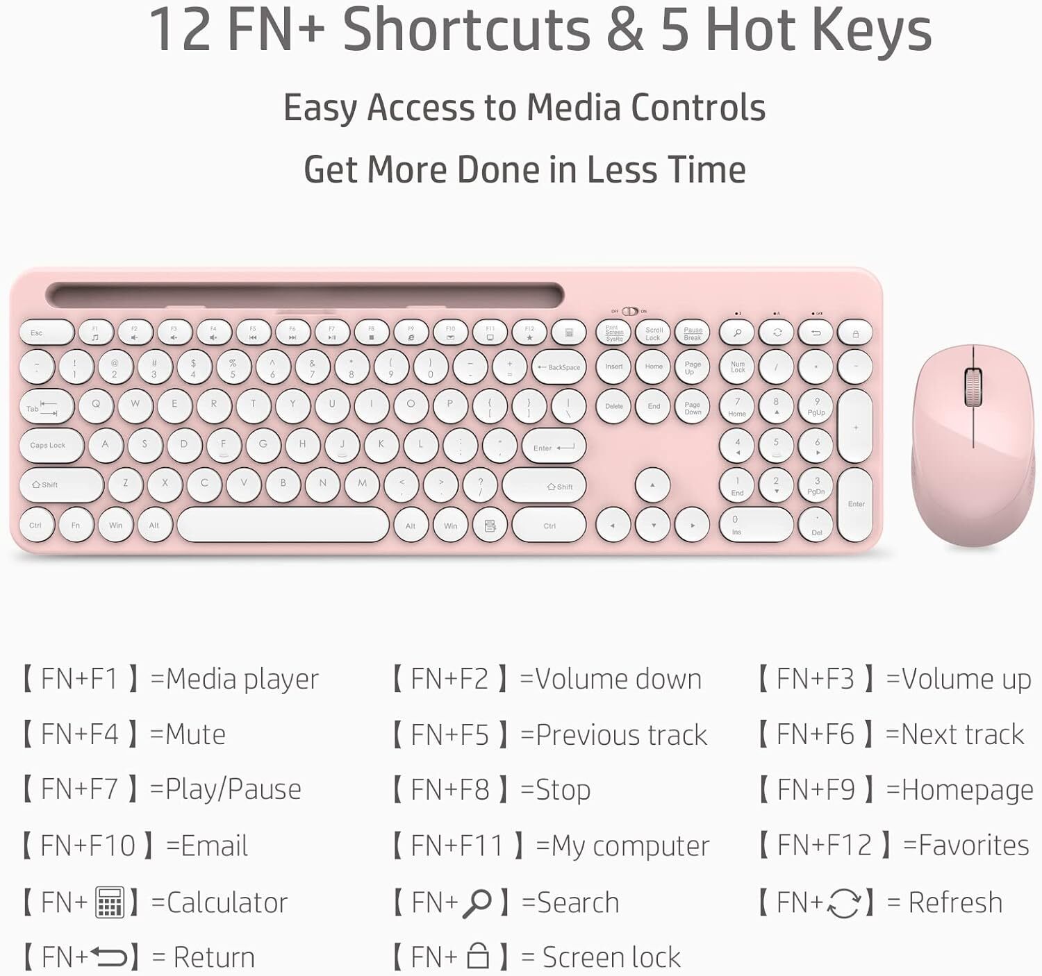 Wireless Keyboard and Mouse Combo with Phone and Tablet Holder PINK