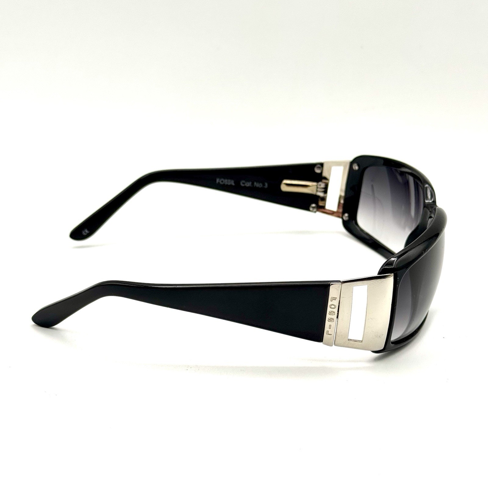Fossil Jo Oval Sunglasses Black Silver Accent Designer Frame Gradient Lenses