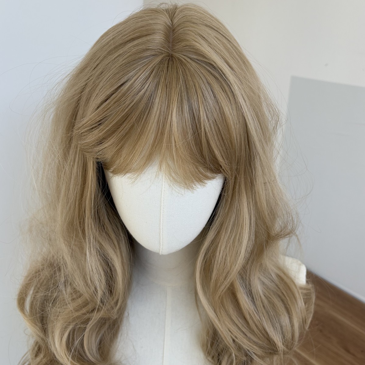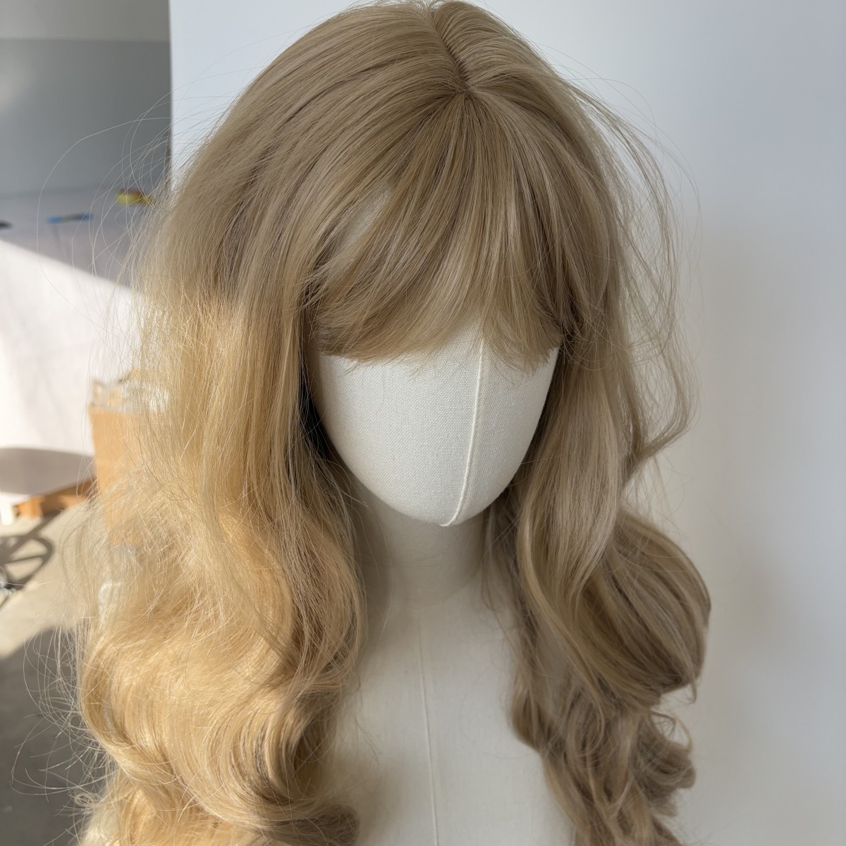 как выглядит Dress Up Wigs With Bangs Blended Blonde Heat Resistant Hair Long Wavy фото