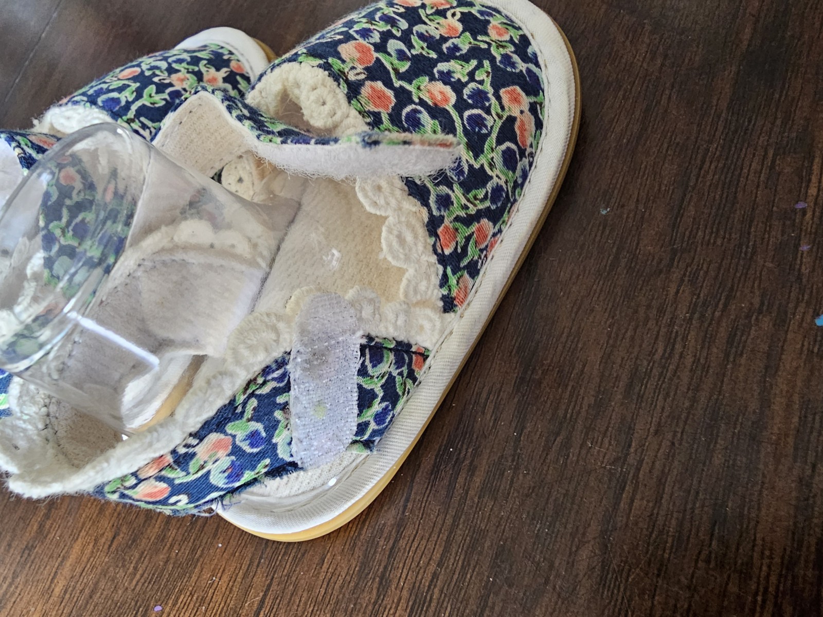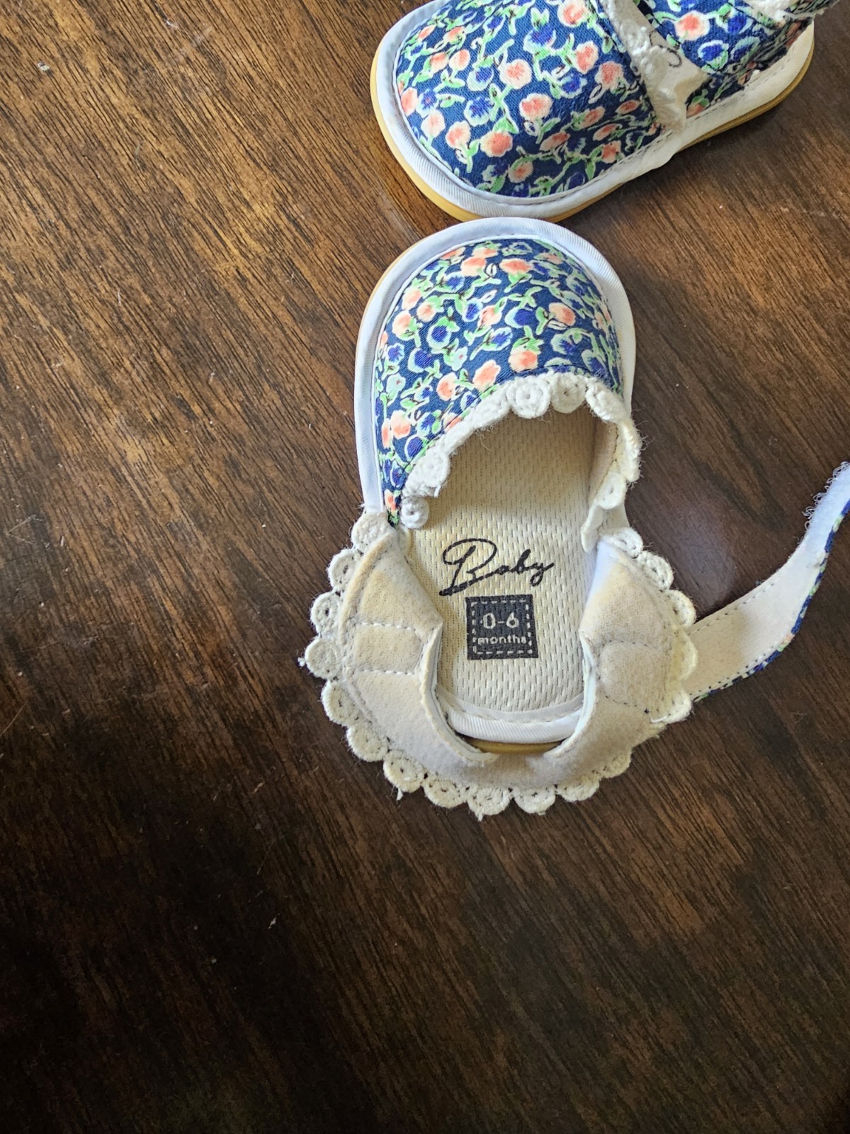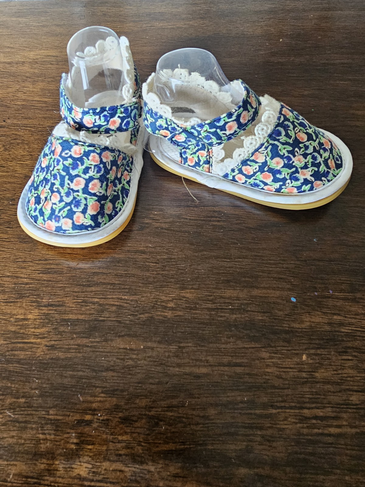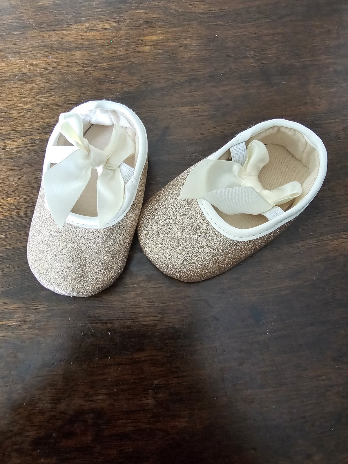 3 pairs of baby/girl shoes soft, floral, and glittery in various styles.