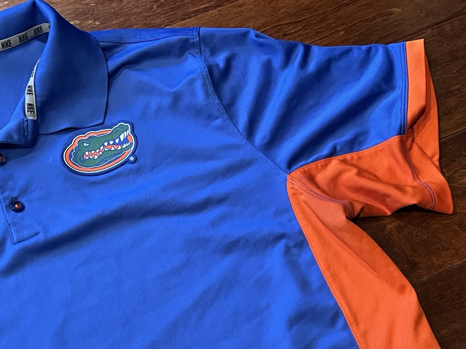 как выглядит Nike Florida Gators Blue Orange ColorBlock Mens XL Dri-Fit Promo Logo Polo Shirt фото