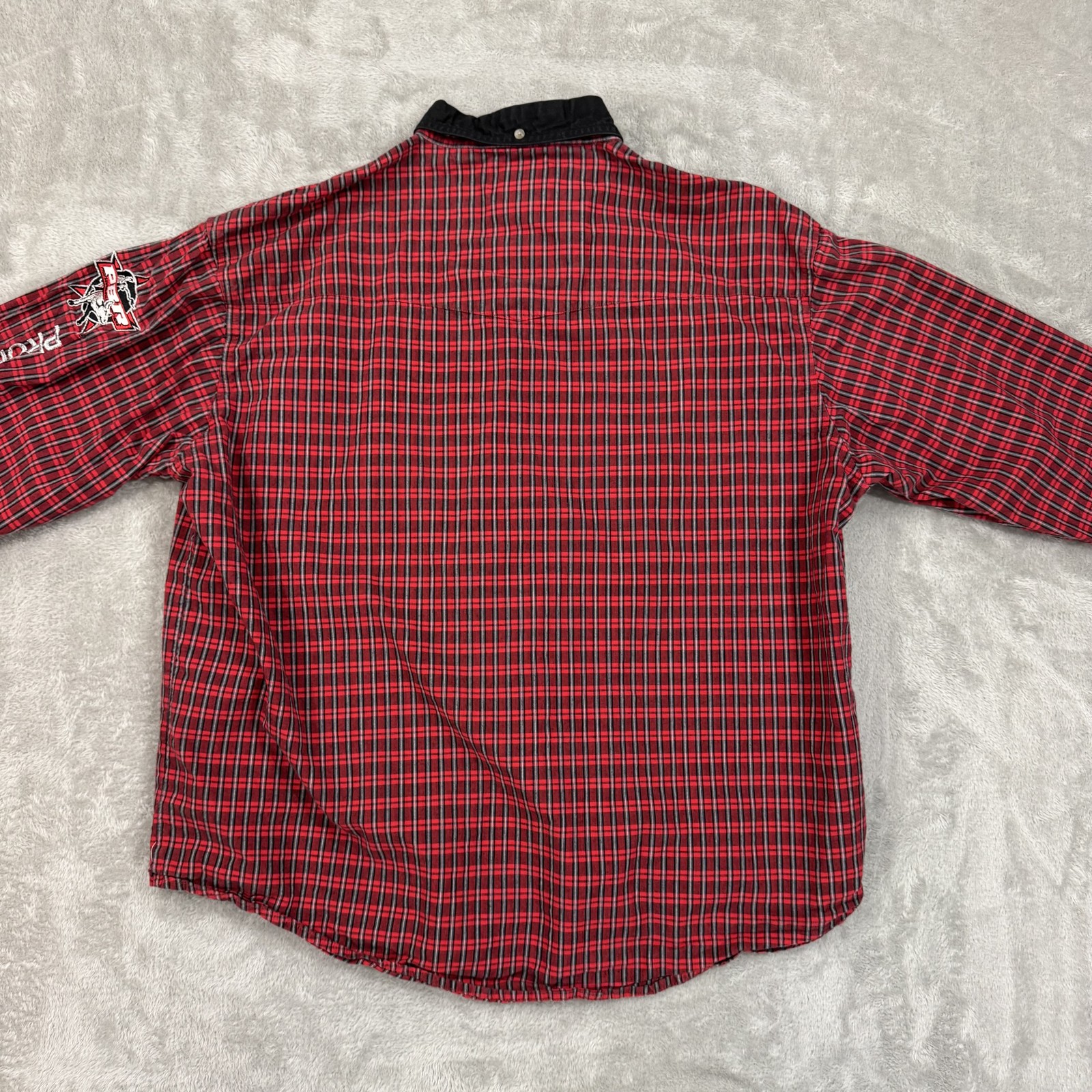 Wrangler PBR Shirt Mens XL Professional Bull Riders Red Plaid Western Cowboy