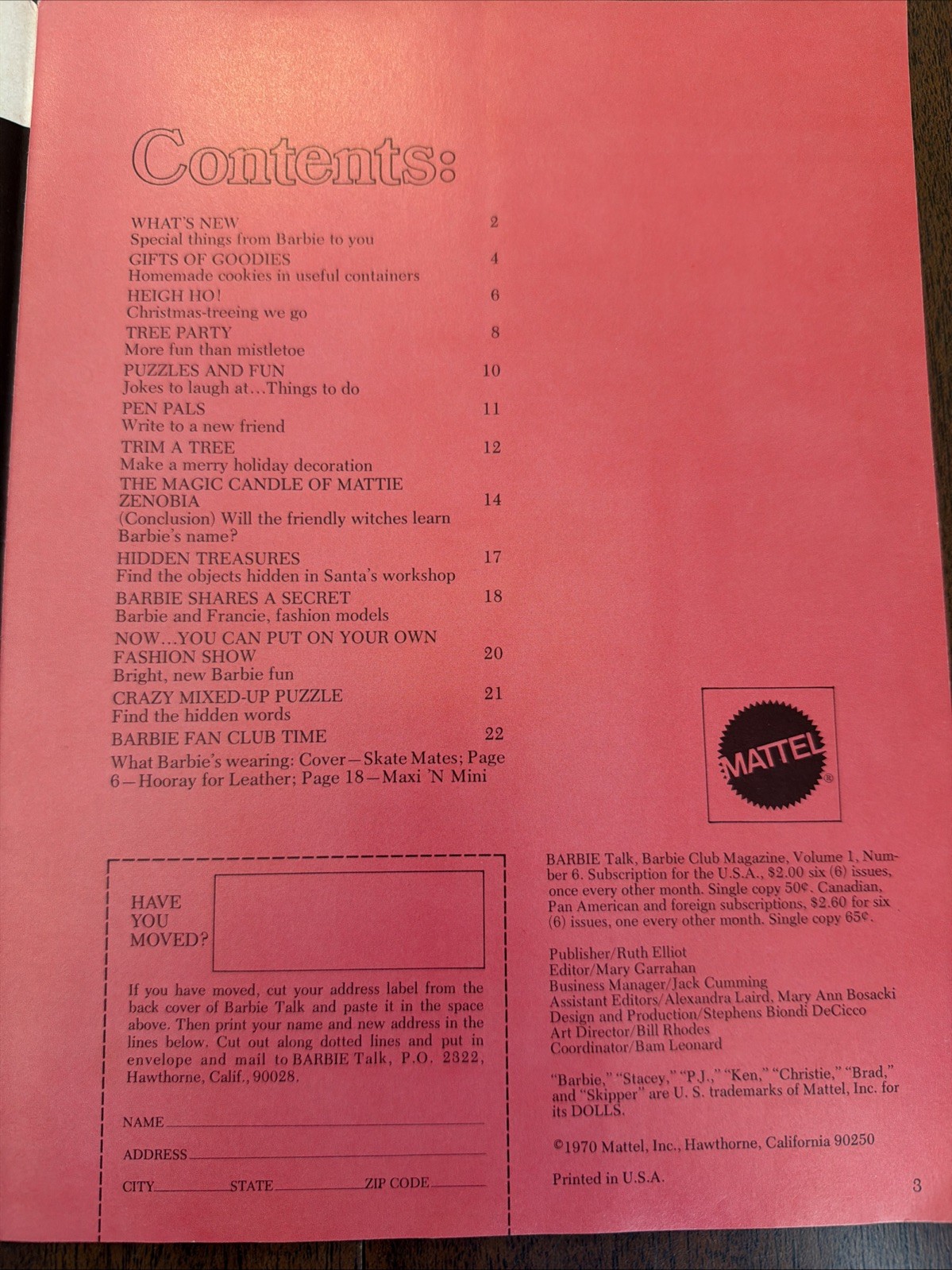 • Vintage 1970 Volume 1 Number 6 BARBIE TALK fan MAGAZINE from MATTEL