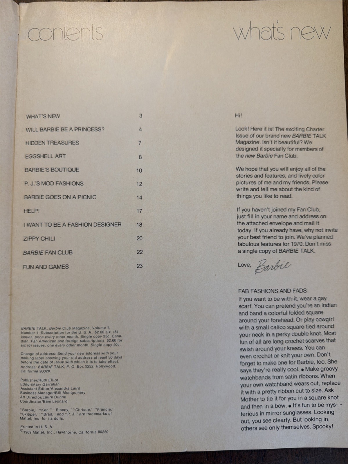 • Vintage 1970 Volume 1 Number 1 BARBIE TALK fan MAGAZINE from MATTEL