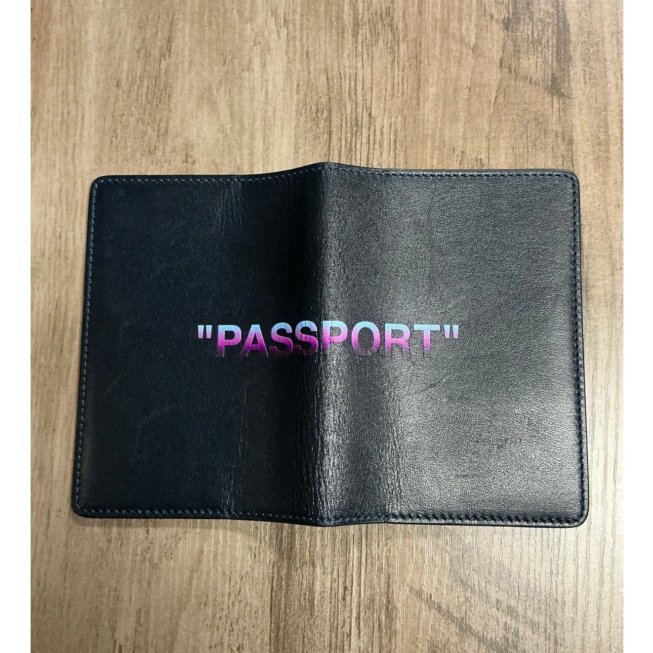 как выглядит Off-White Blue Quote Genuine Leather Passport Holder фото