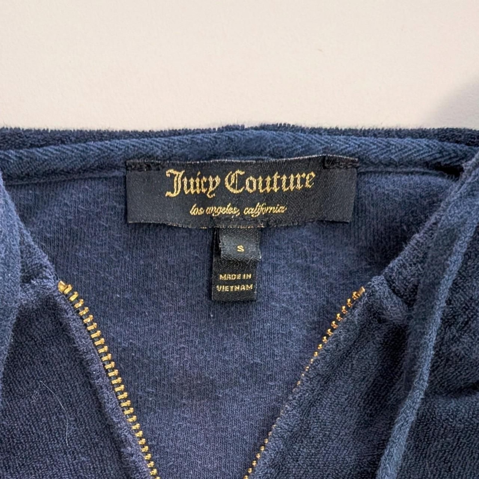 Juicy Couture Navy Blue Terrycloth Zip-Up Hoodie With Gold Accents Size S