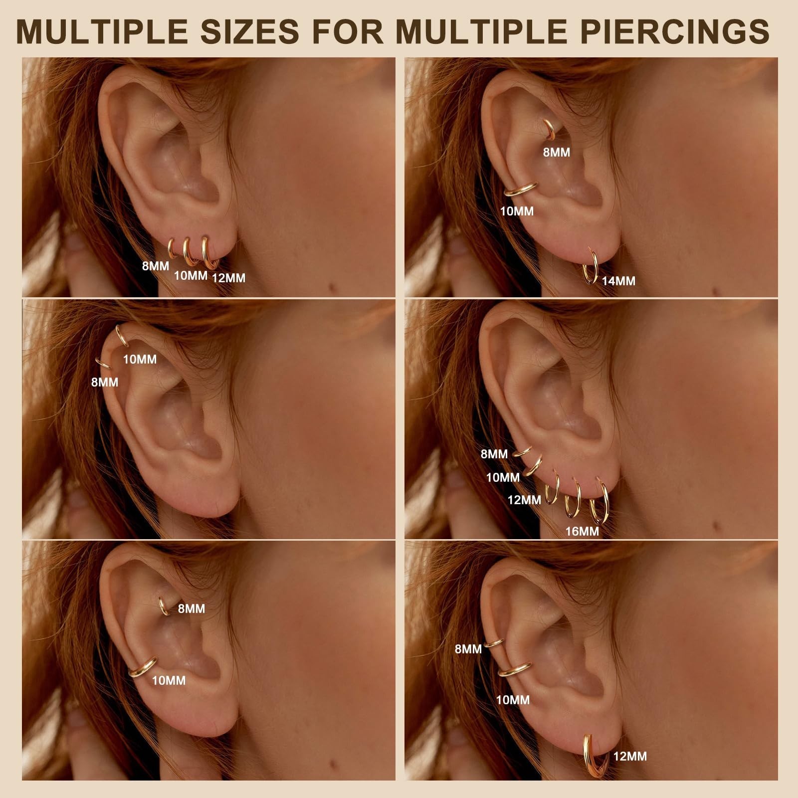 ONESING 5 Pairs Small Hoop Earrings for Women Stainless Steel Hinged Huggie H...