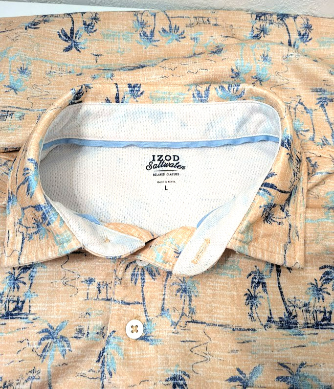 Izod Saltwater Polo Shirt Men Large Palm Tree Print Polyester Golf Golfing