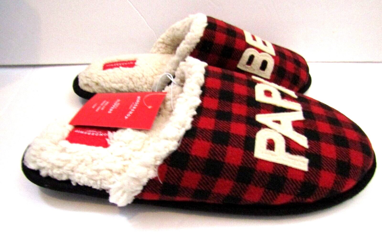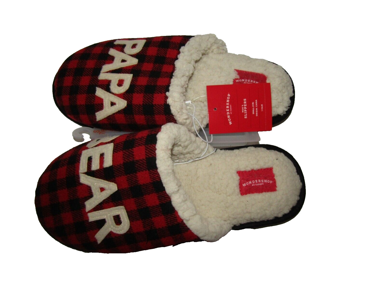 NEW, WONDERSHOP Men's Papa Bear Padded Slippers Red Black Plaid -SIZE SM 7/8
