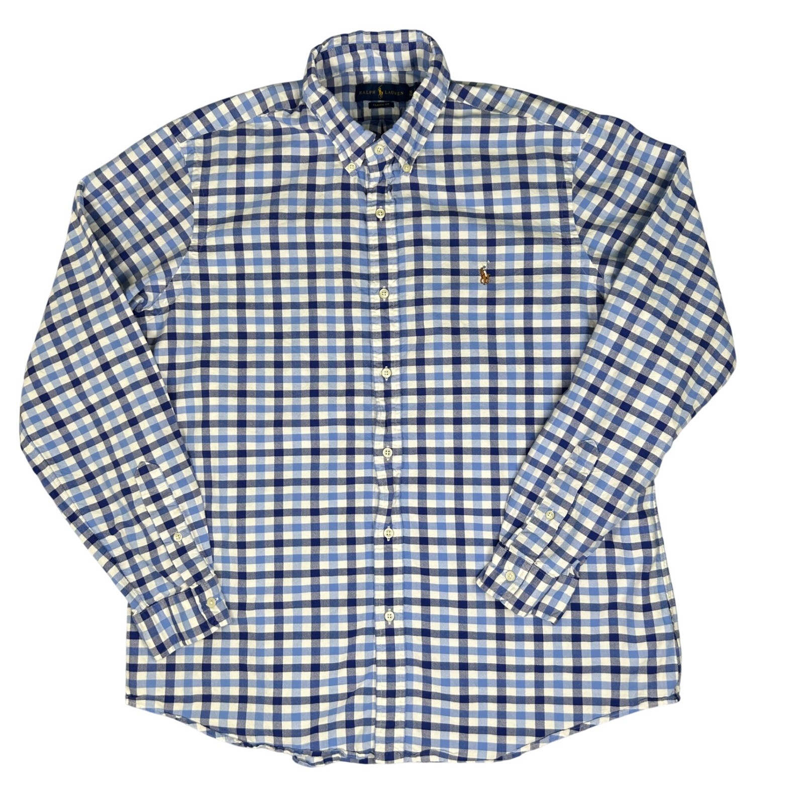 Polo Ralph Lauren Classic Fit Gingham Button Down Long Sleeve Shirt Blue XL