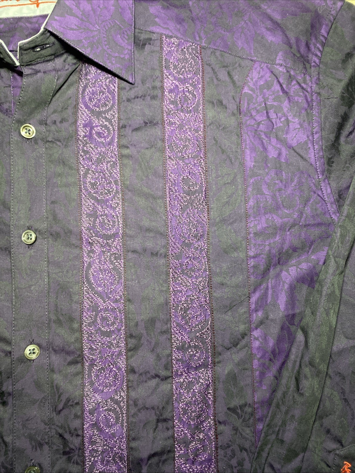 Robert Graham Purple Patterned Button Down Shirt Sz XL Long Sleeve Luxury
