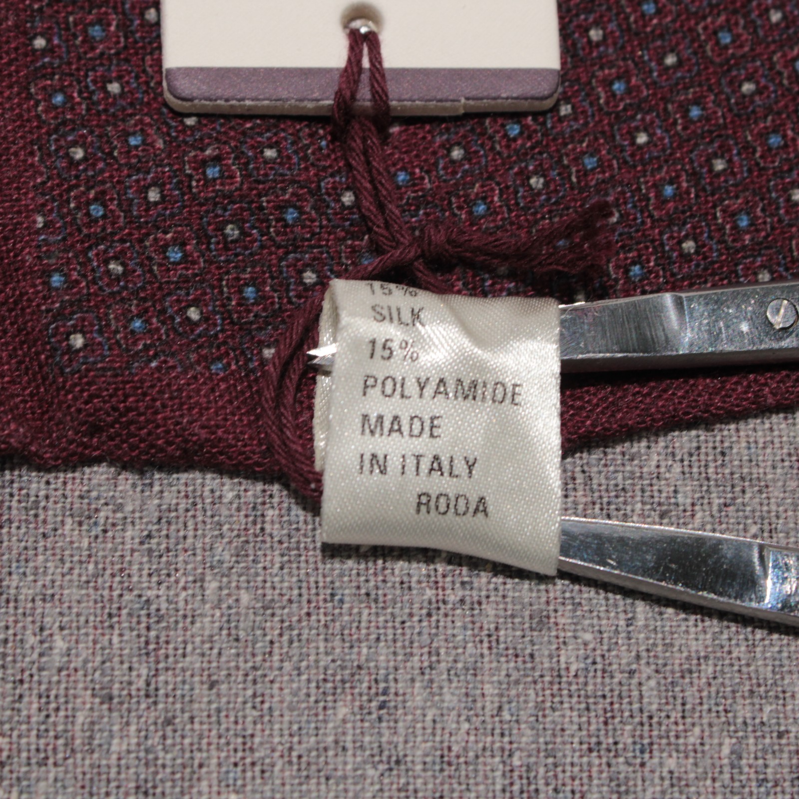 как выглядит Roda NWD Wool / Silk Blend Pocket Square In Red w/ Blue White Geometric Print фото