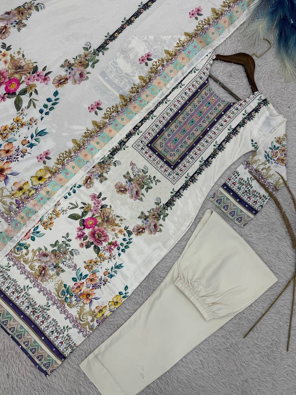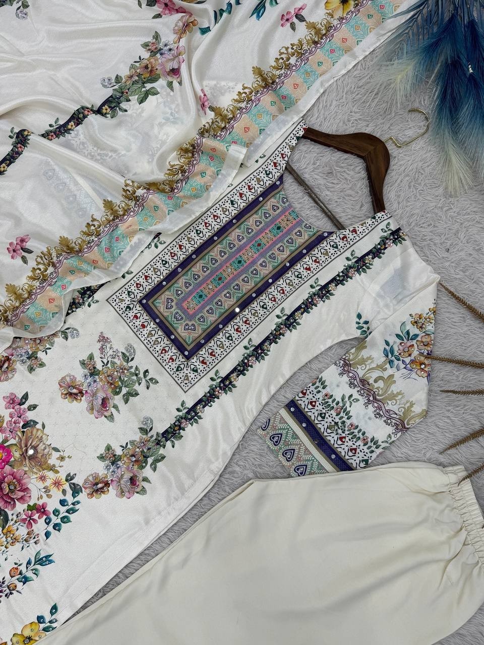Stylish Off-White Heavy Chinon Silk Top Palazzo With Dupatta For Wedding Wear