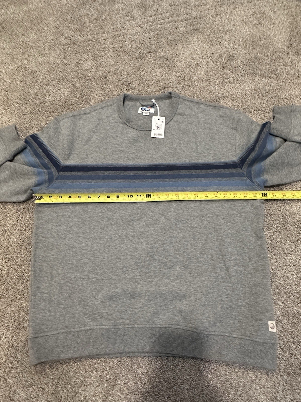 как выглядит Marine Layer Mens L Cloud 9 Fleece Relaxed Crewneck Heather Gray Multi Stripe фото