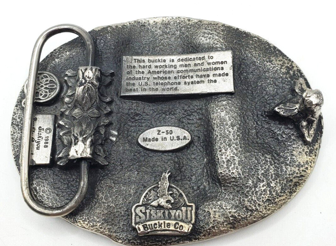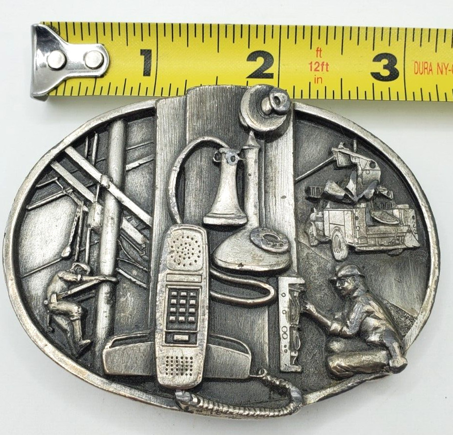 Vintage Belt Buckle Silver Tone Communication Workers Linemen Telephone