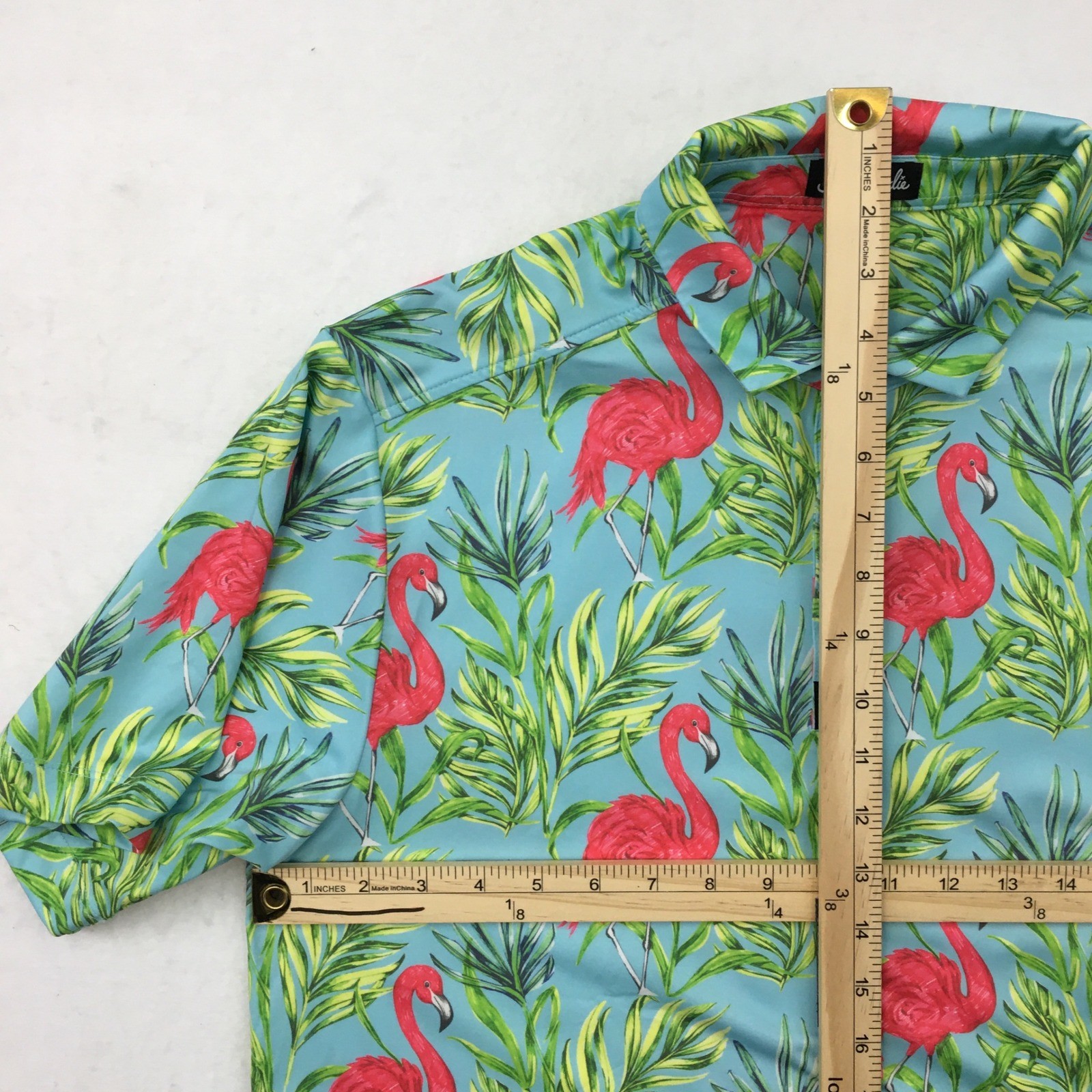 как выглядит Bad Birdie Mens Golf Polo Shirt Large Flamingo Palm Tree Print Short Sleeve фото