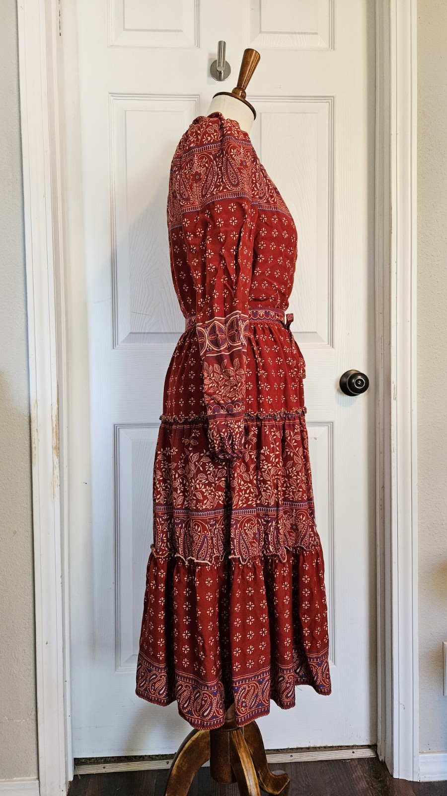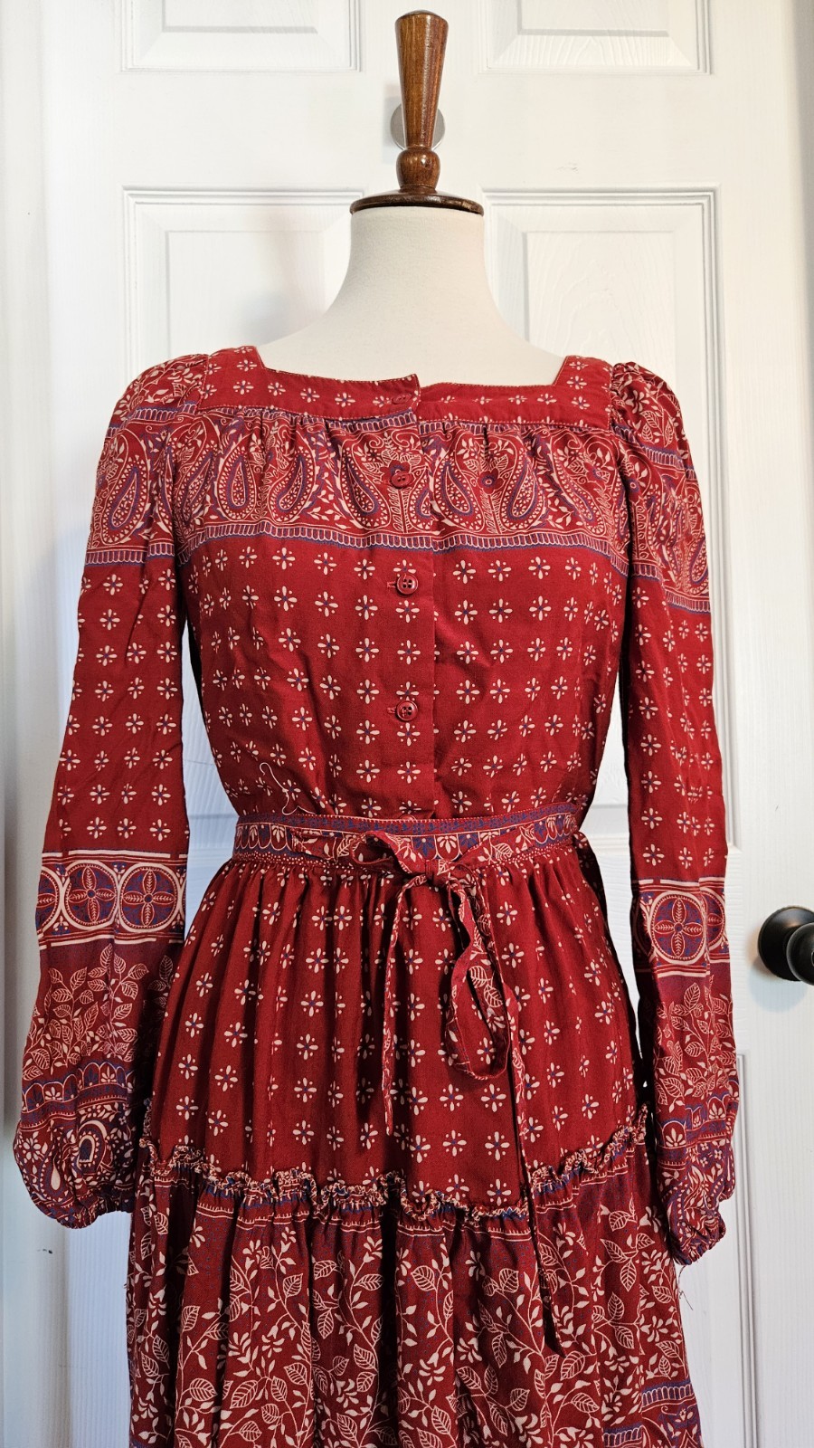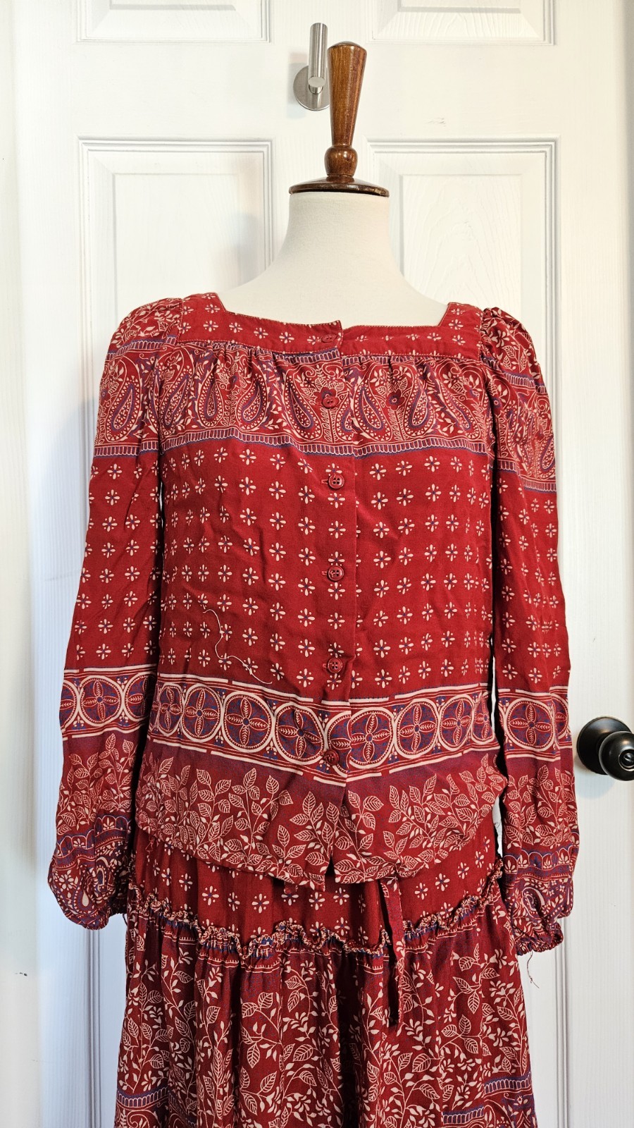 как выглядит Vintage Rayon Cotton Red Blue Paisly Floral Boho Skirt And Blouse Set Size Small фото