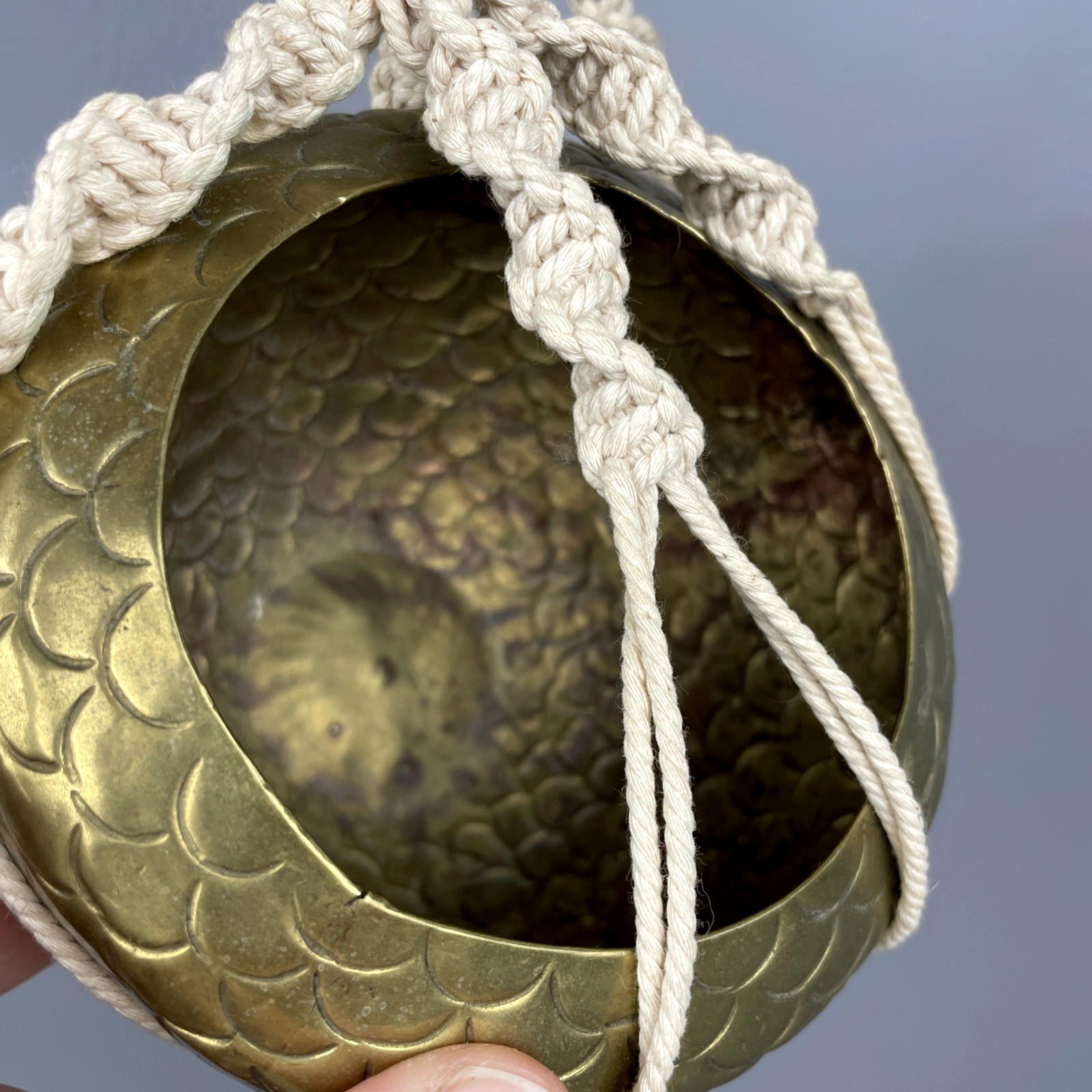 VTG Double Macrame Plant Hanger with Two Brass Bowl Planters