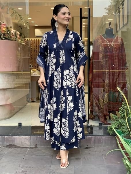 Pakistani salwar kameez Women Printed A-Line Kurta Pant With Dupatta