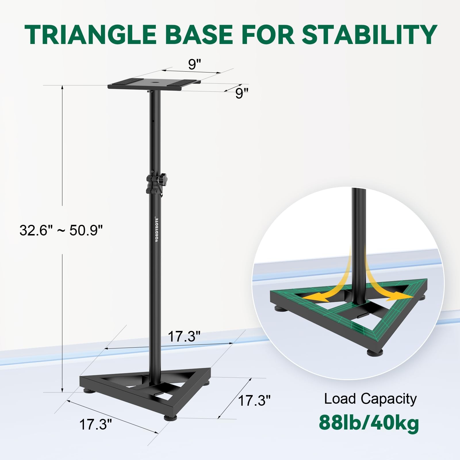 Adjustable Studio Monitor Stands Tripod Base 32.6 -50.9 Black Heavy Duty Pair