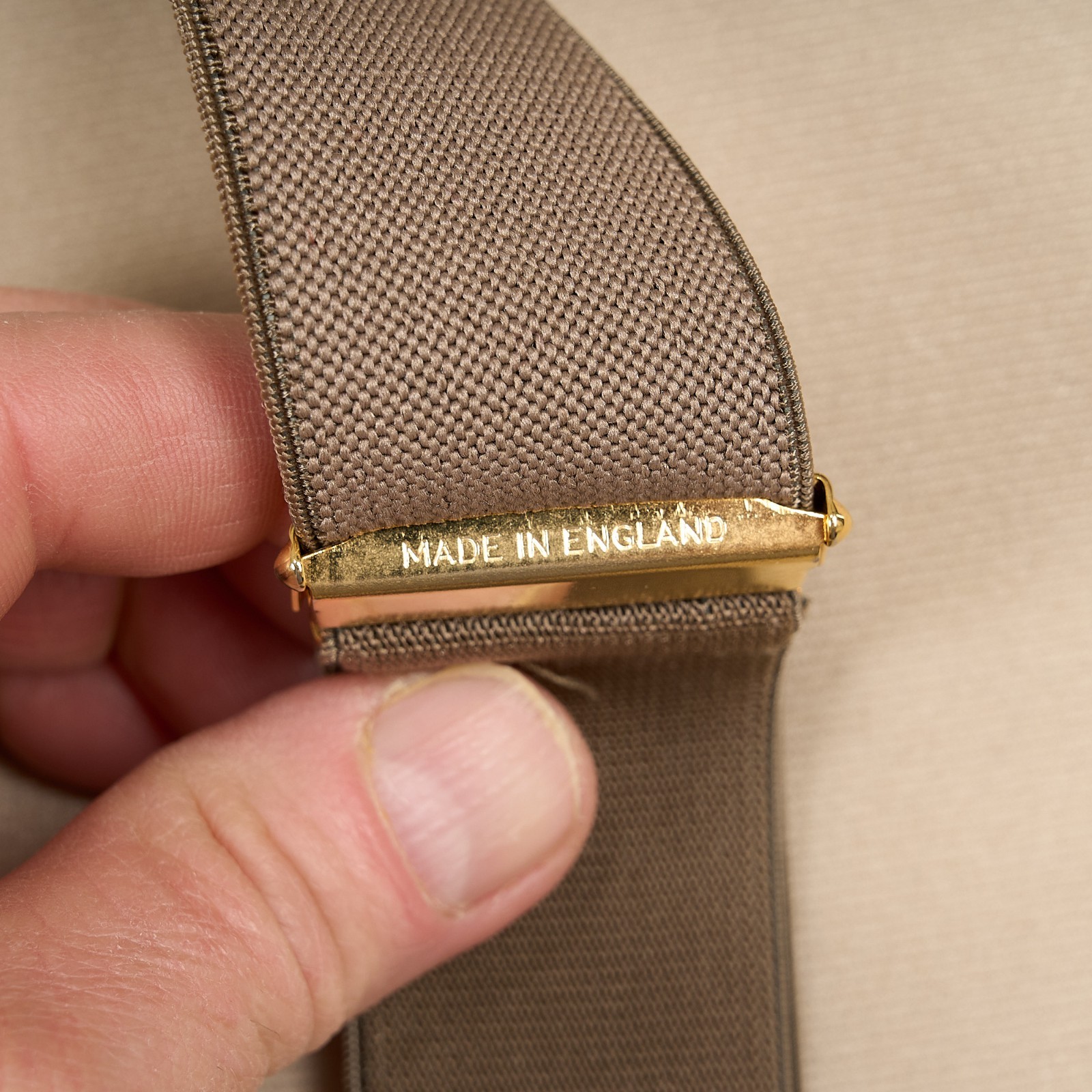 Mens Suspenders Taupe Navy Leather Button On Style Adjustable England