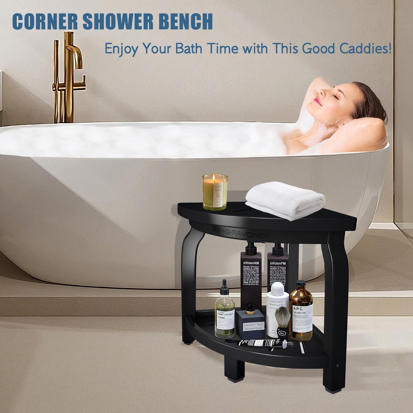 Bamboo Corner Shower Stool for Shaving Legs Foot Rest, Waterproof Bath Bench ...