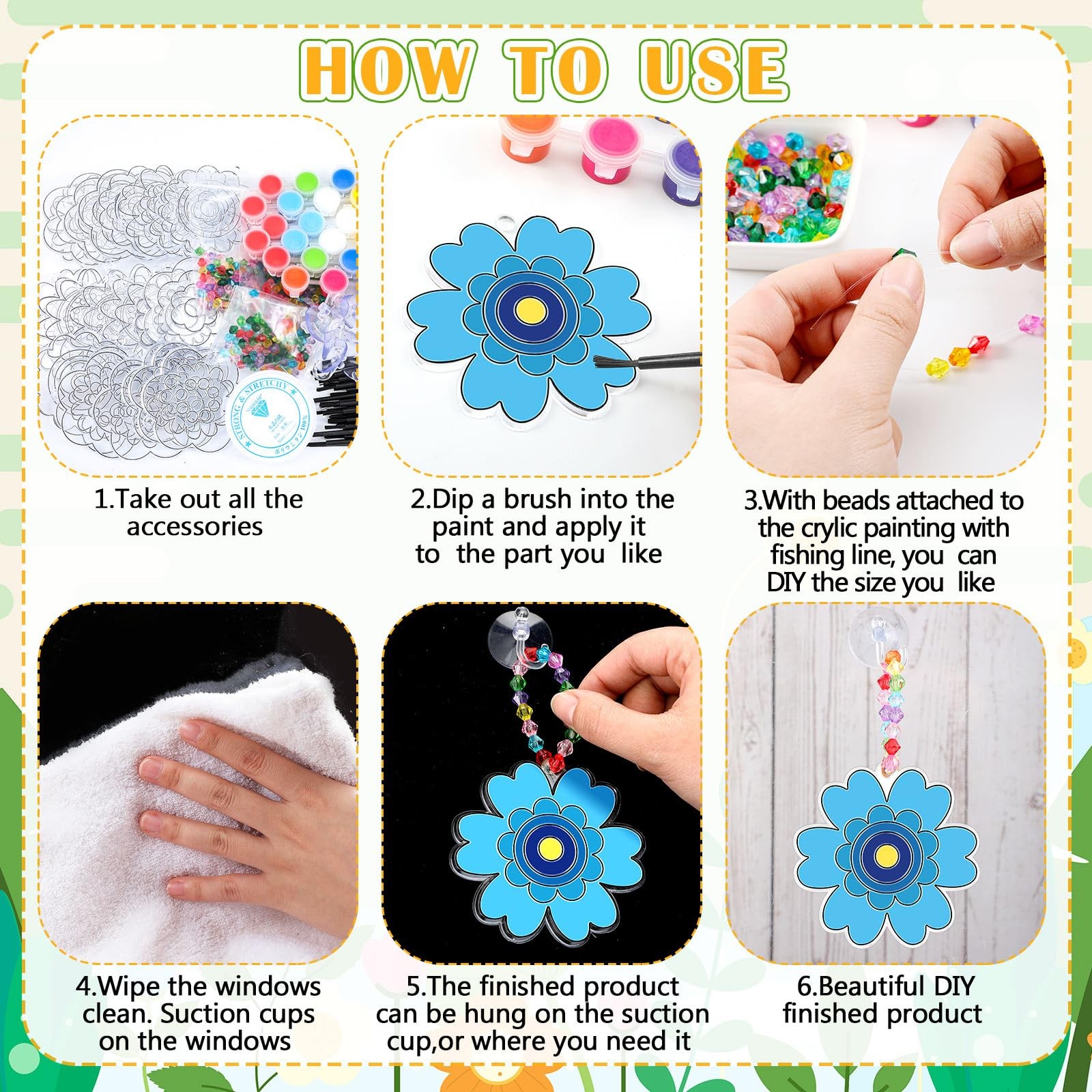 как выглядит 30 Sets Flower Suncatchers Window Art Kits, Spring DIY Sun Catchers Crafts Pa... фото
