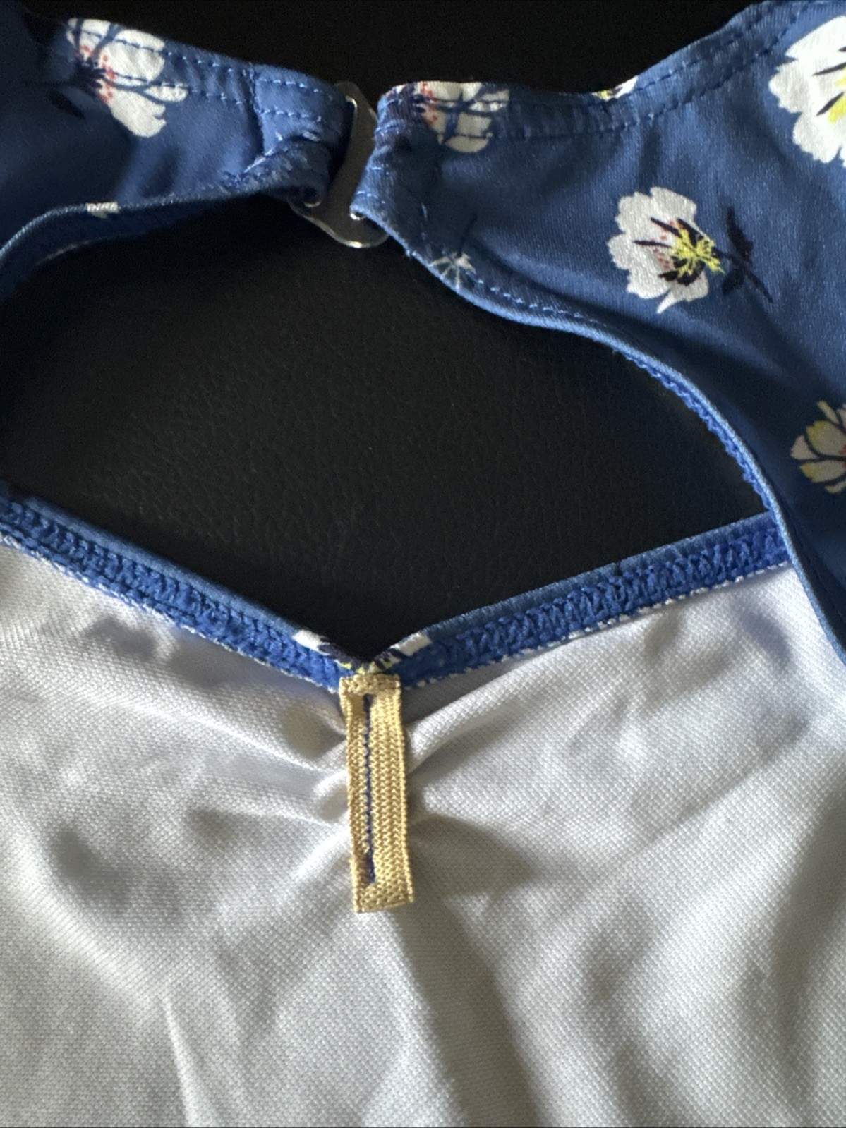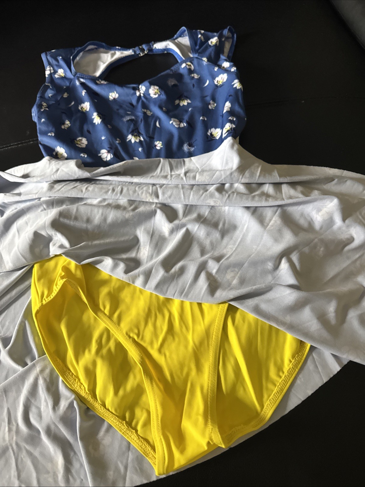 как выглядит Weissman Dance Costume Blue Pleated White Flower Dress Yellow Leotard Waist SA фото