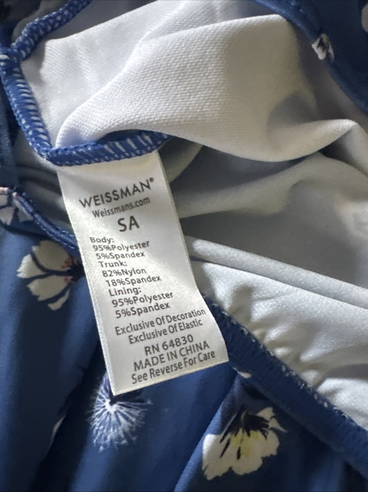 Weissman Dance Costume Blue Pleated White Flower Dress Yellow Leotard Waist SA
