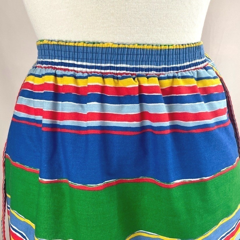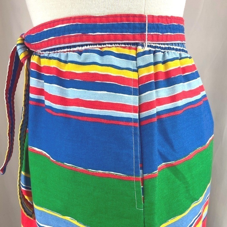 как выглядит Vintage 70s A-Line Skirt Womens 28 Floral Sash Pockets Cottage Mod Stripe USA фото