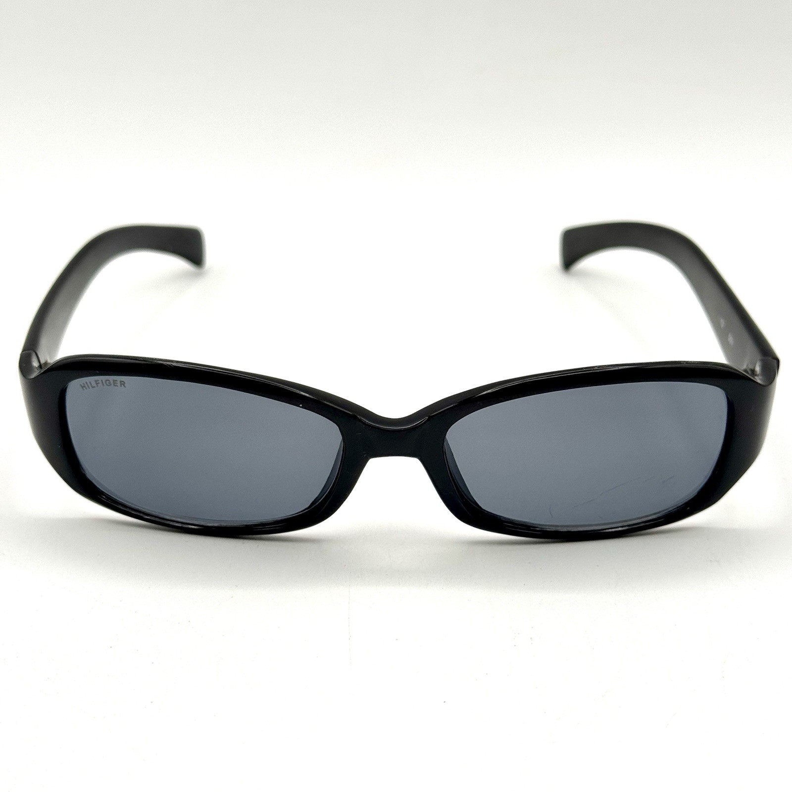Tommy Hilfiger Oval Sunglasses Black Gloss Designer Fashion Frame Lenses VTG