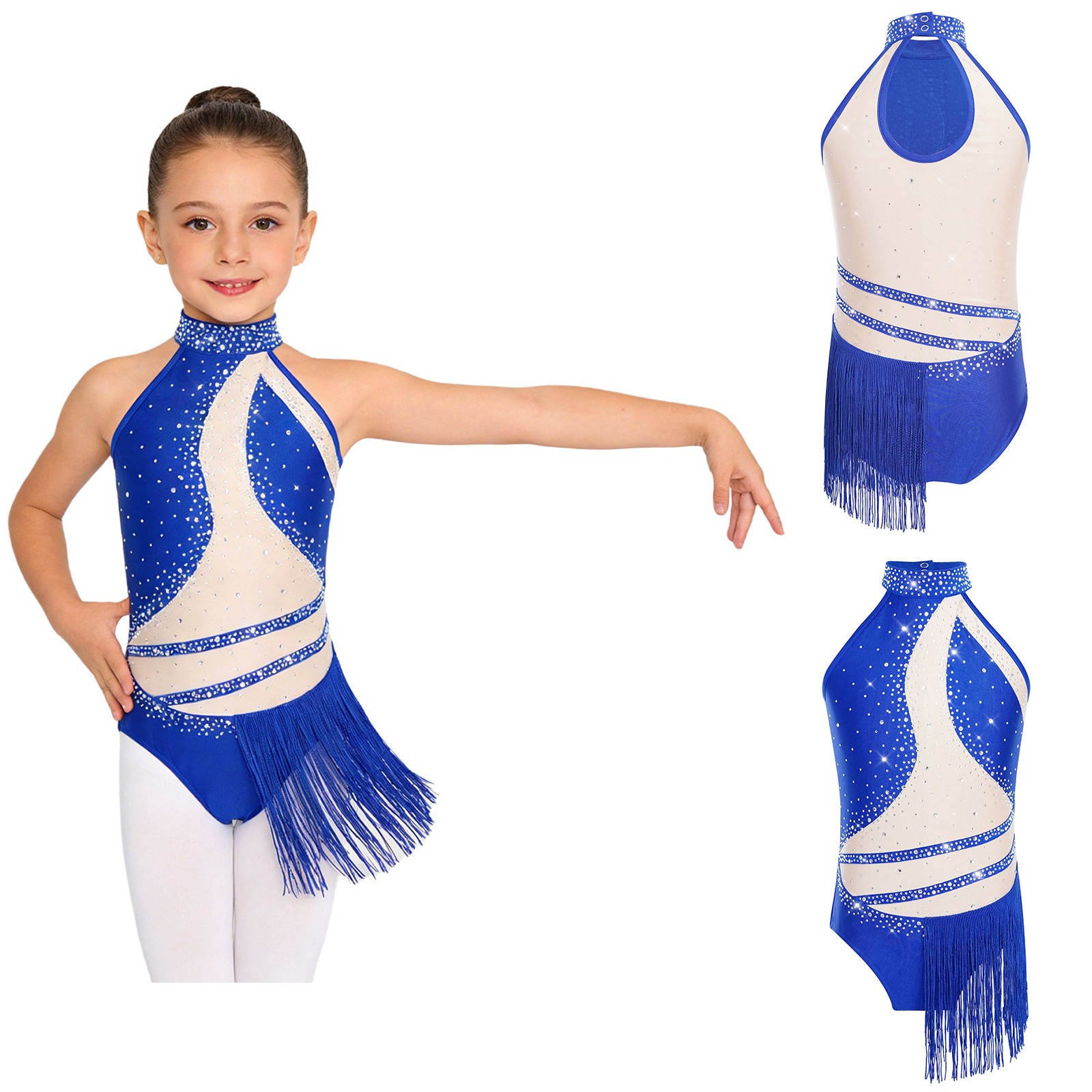 как выглядит Kids Girls Jumpsuit Fringed Leotard Stage Performance Bodysuit Yoga Competition фото