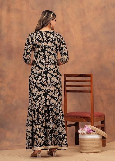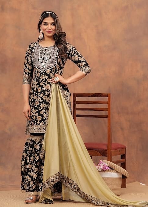 Women Indian Pakistani Style Sharara Set Embroidered Kurti Dupatta Party Wedding