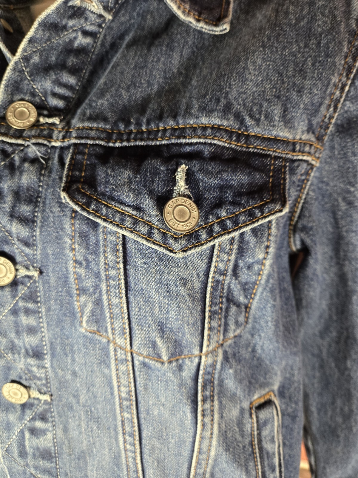 как выглядит Gap Denim Kids Girls Boys Blue Distressed Jean Button-Up Jacket Size Large 10-11 фото