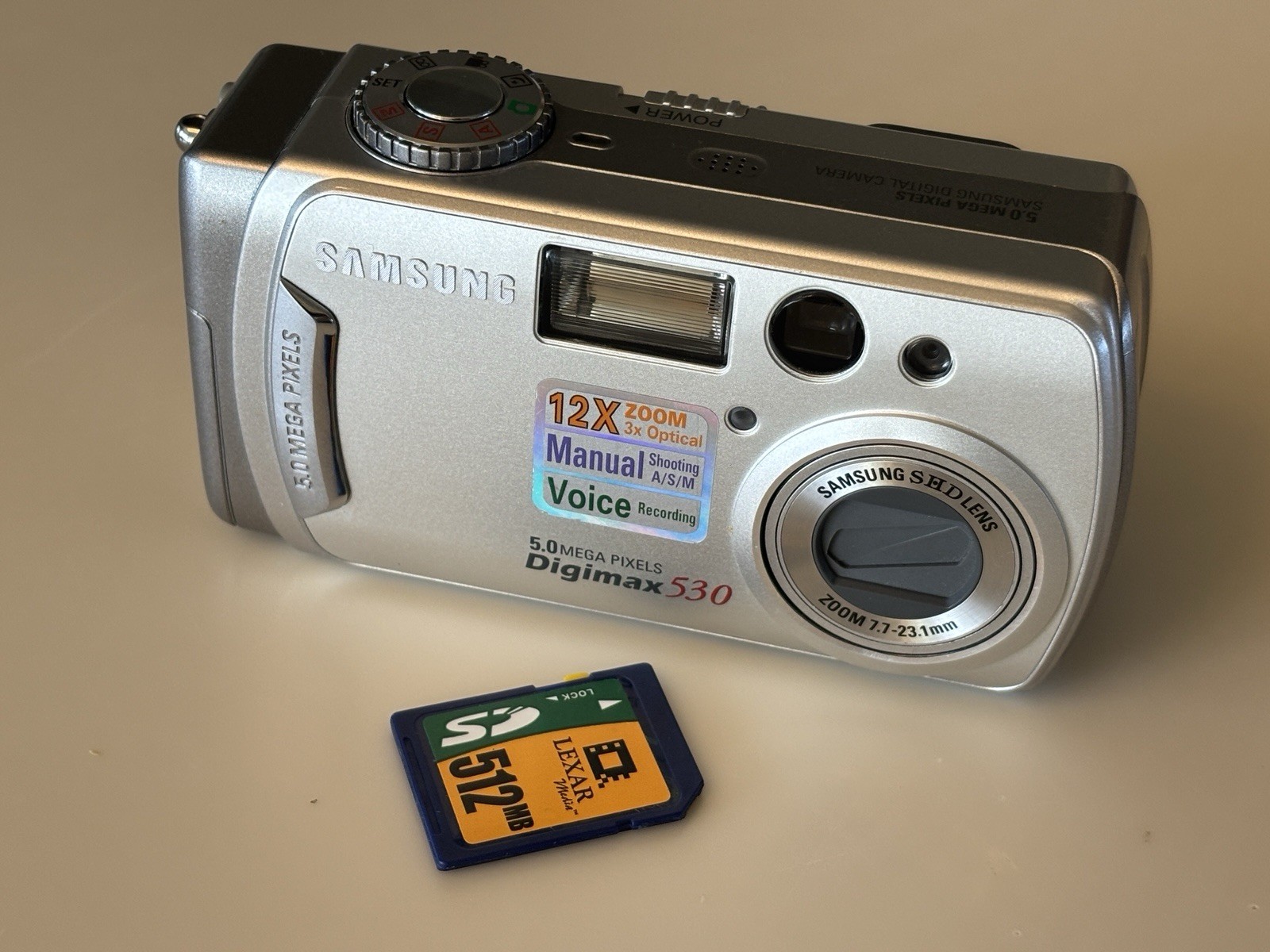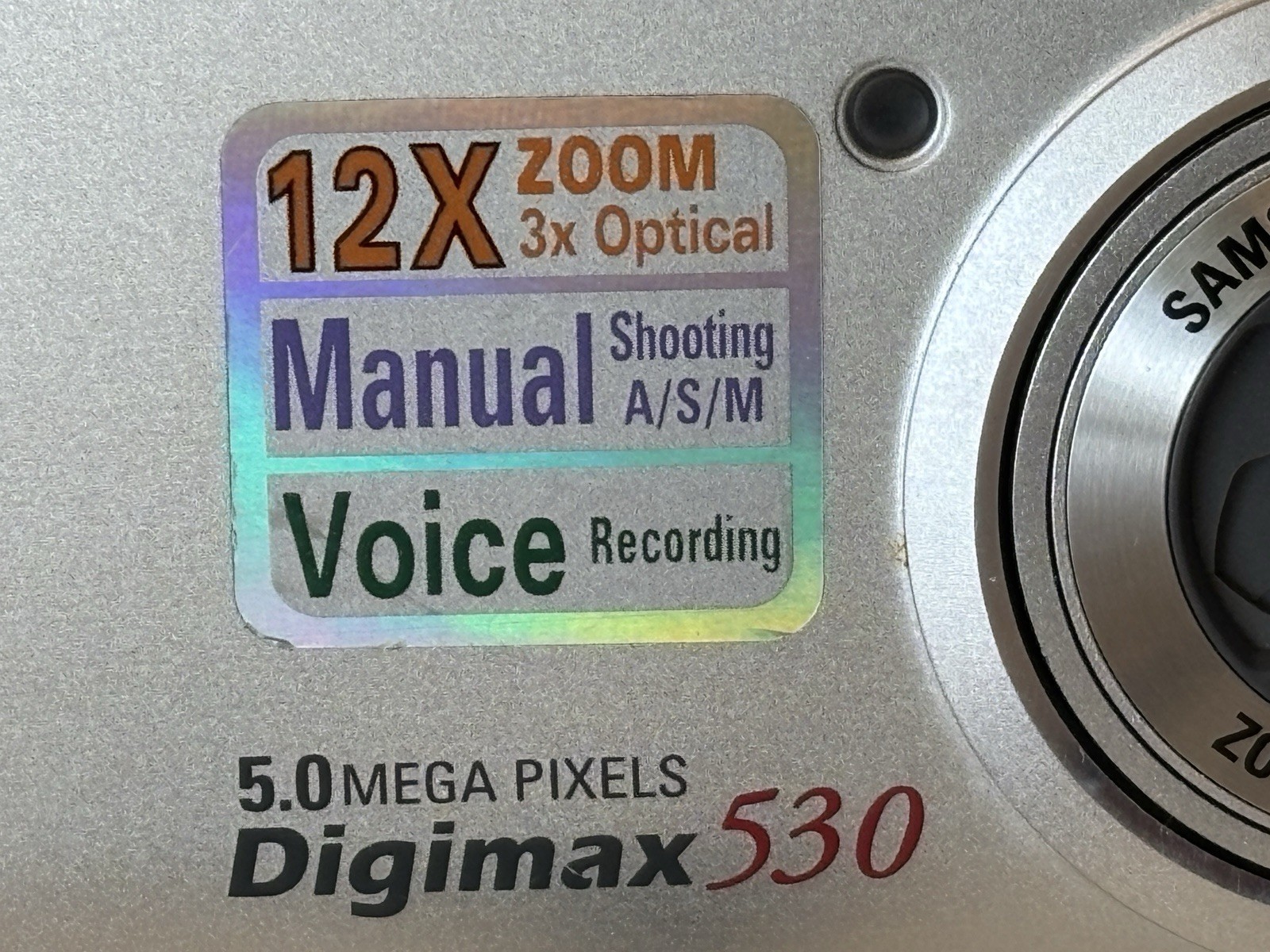 Samsung Digimax 530 5.0MP Digital Camera W. Card Silver Tested Uses AA Batteries