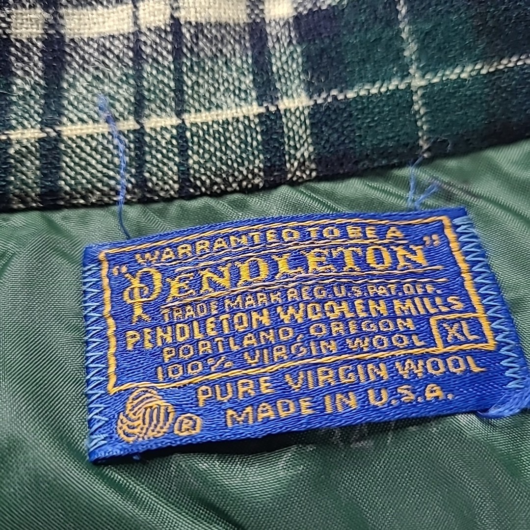 как выглядит VTG 70s Pendleton Green Plaid Wool Loop Flap Pocket Board Shirt USA XL Camp фото