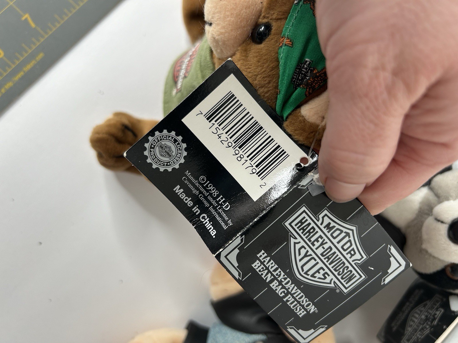 • Vintage Set of 5 Harley Davidson Plush Bean Bag w/tags - 1 Bears 3 Pigs 1 Racco