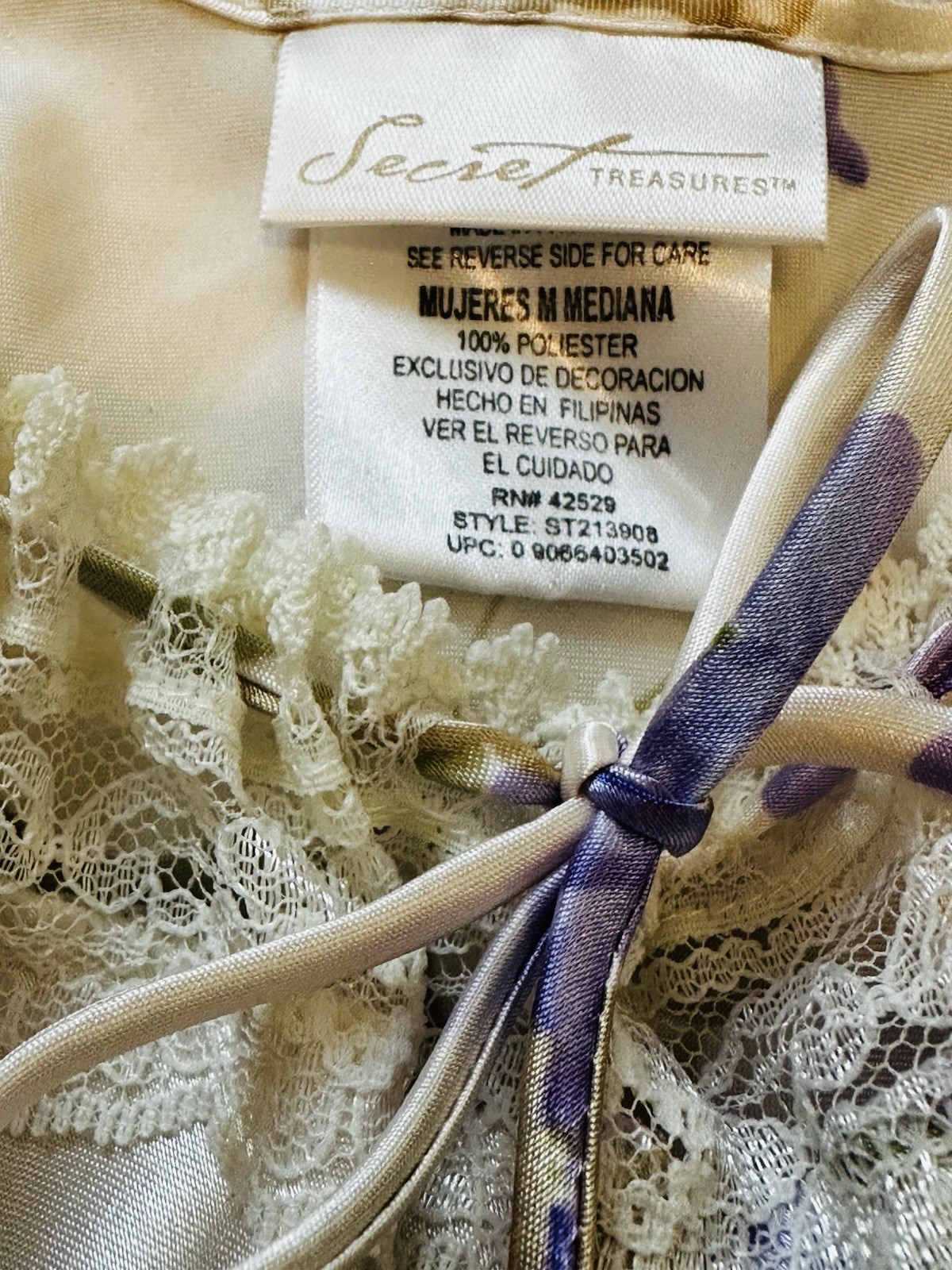 Y2K Floral Satin Cami Top Ruffle Lace Bow Fairy Feminine Coquette Whimsy Size M