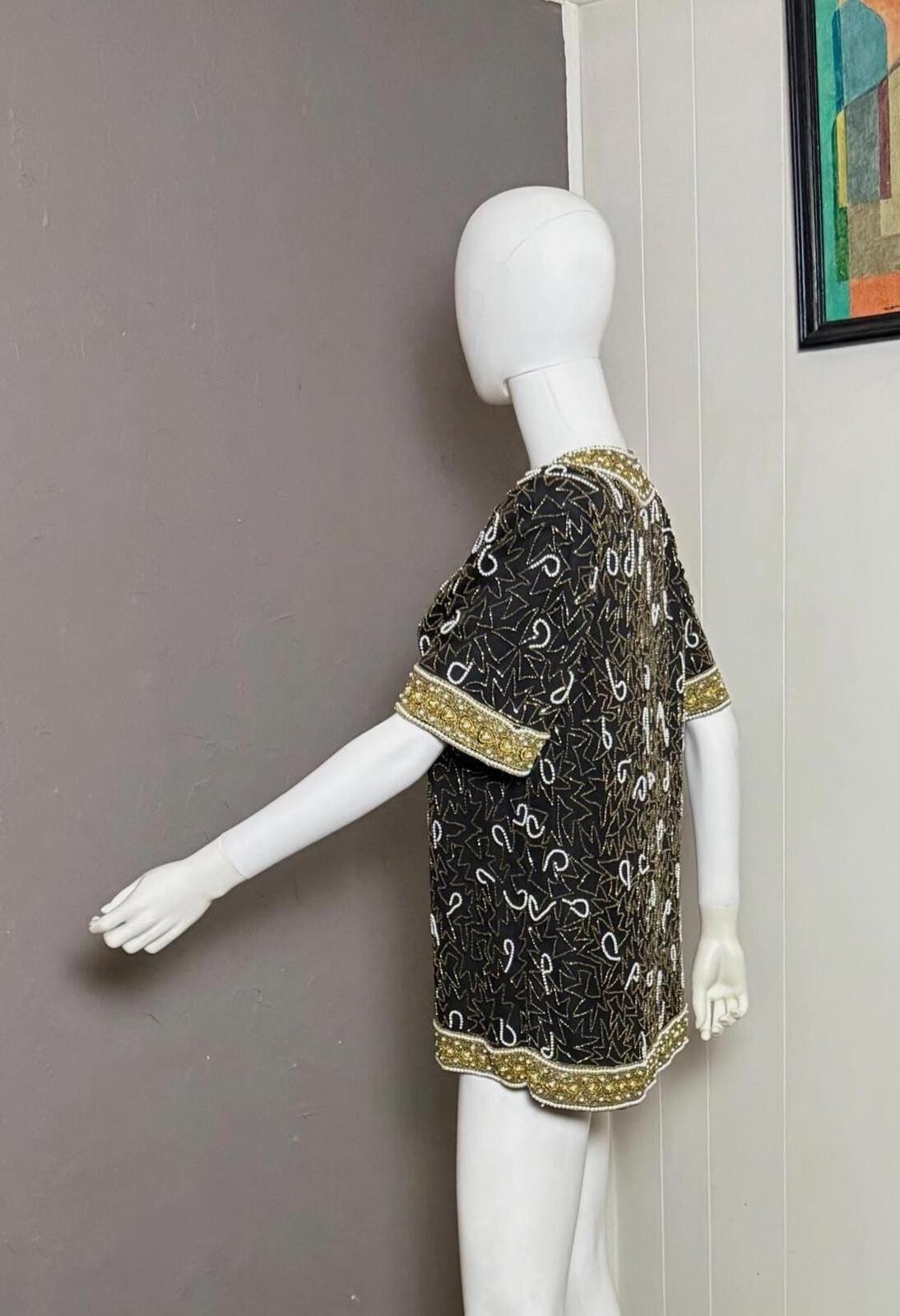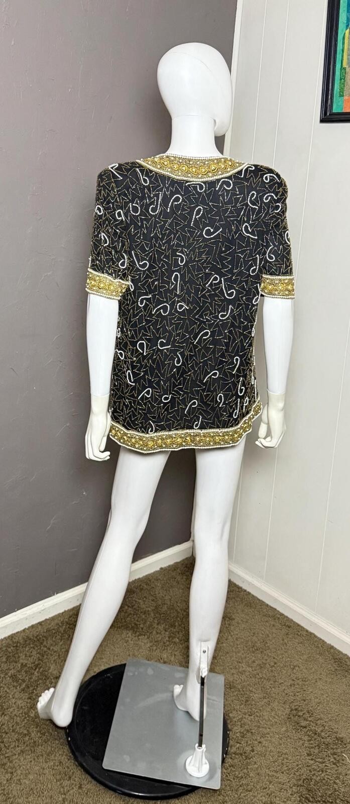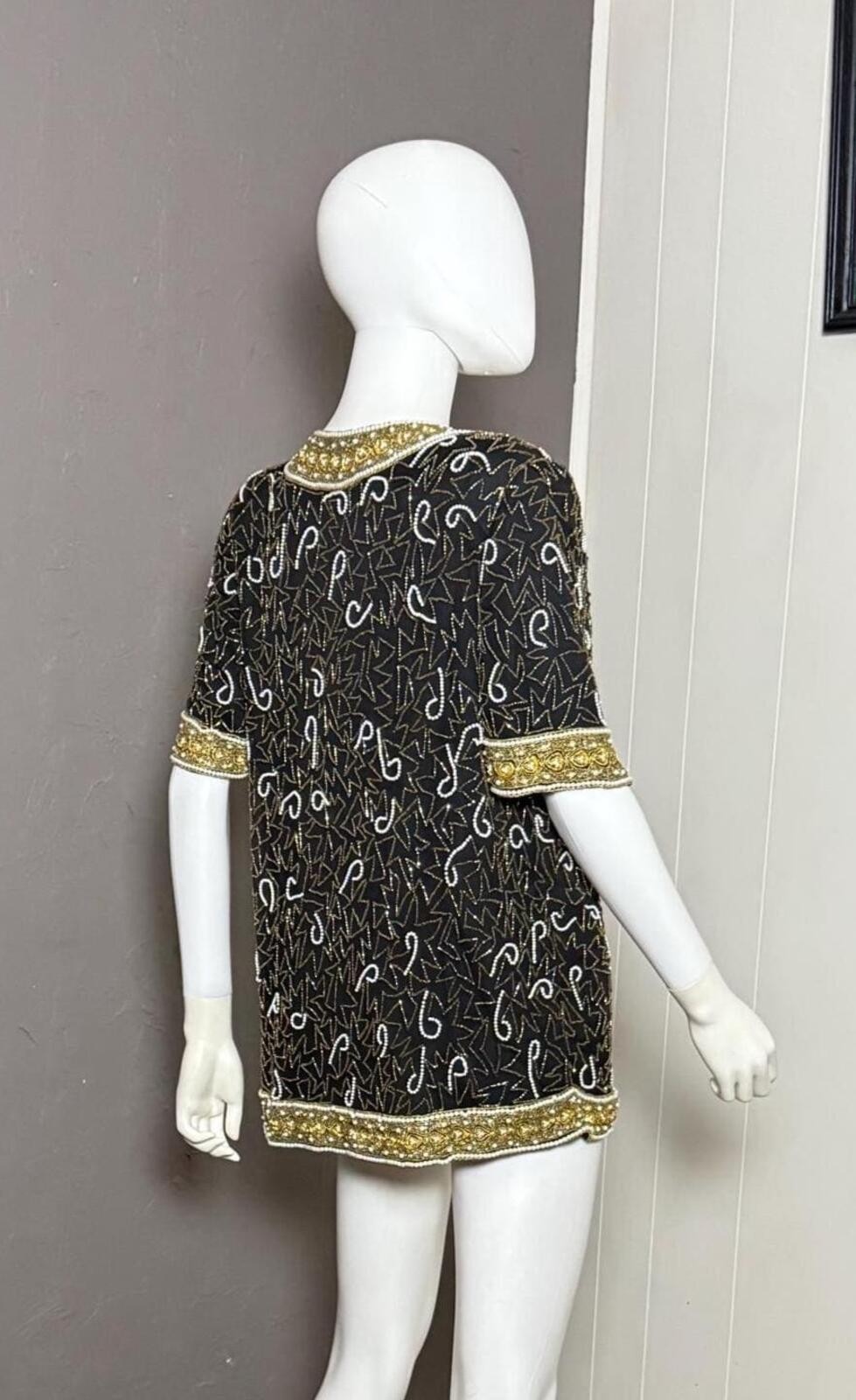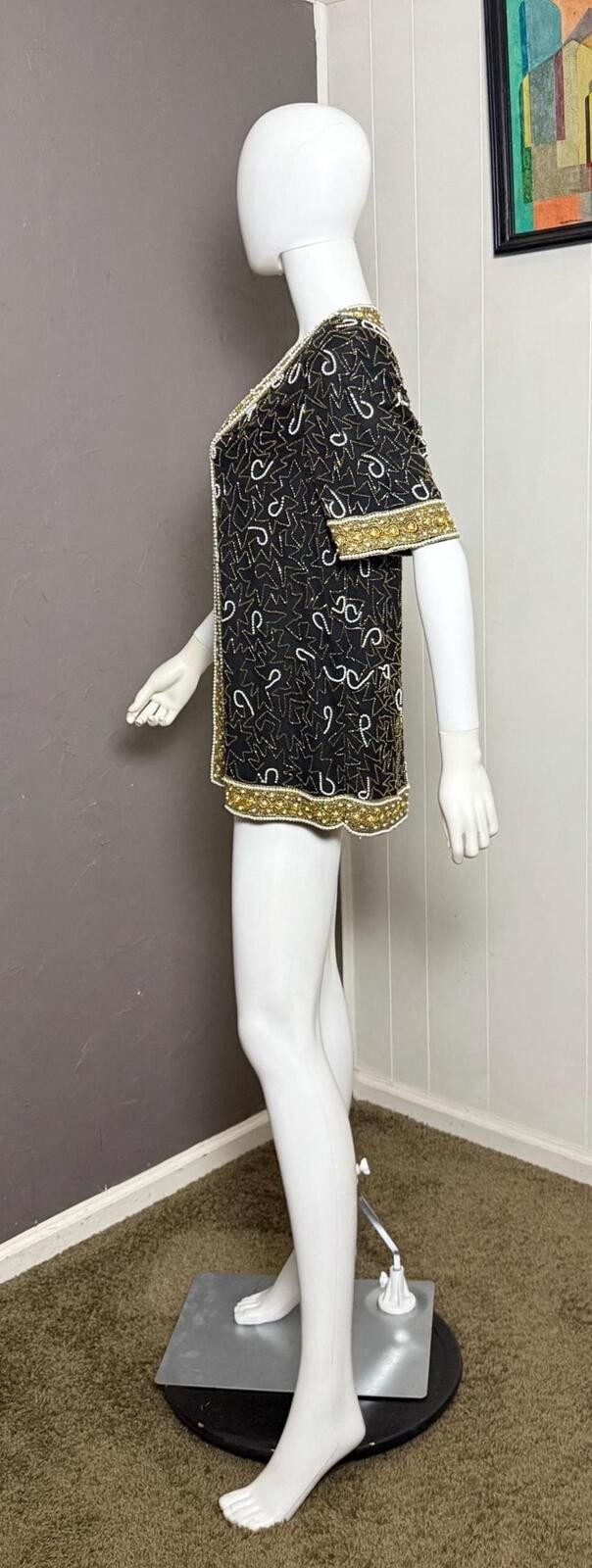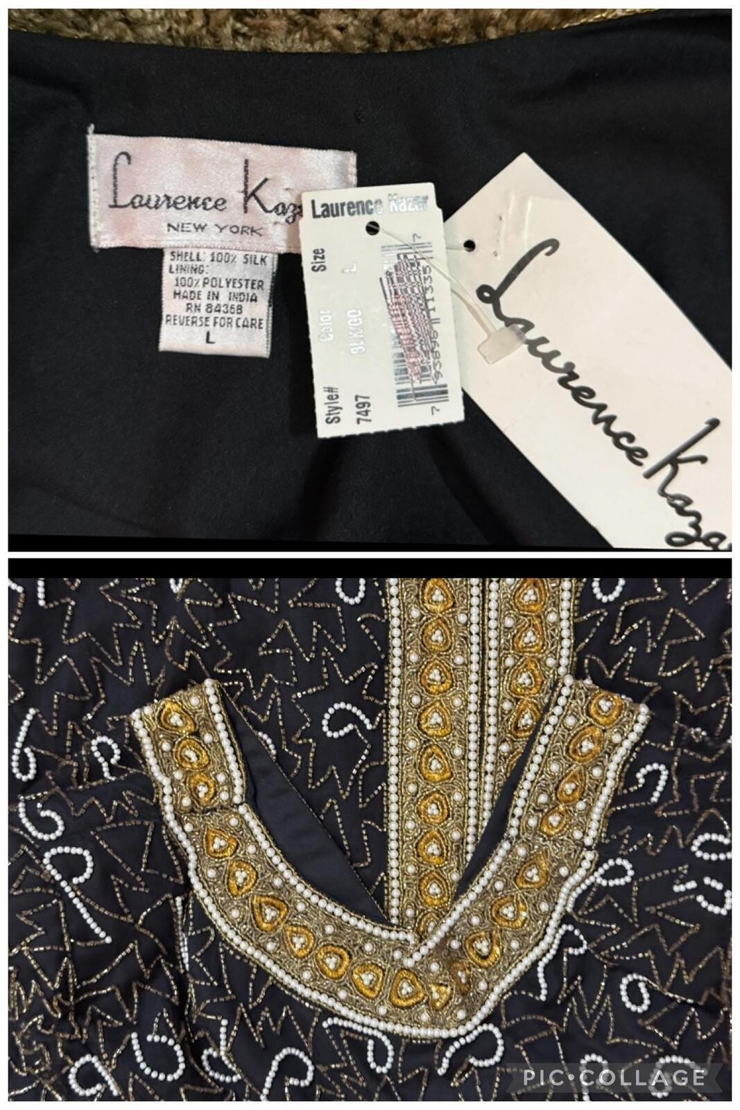 как выглядит 1980s Beaded Silk Jacket New With Tags Laurence Kazar L/XL Black Gold White фото