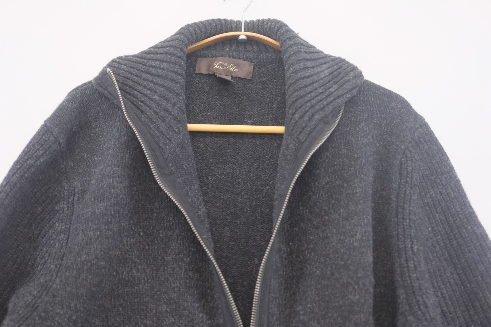 как выглядит Tasso Elba Mens M Charcoal Grey Lambswool Full Zip Cardigan Sweater фото