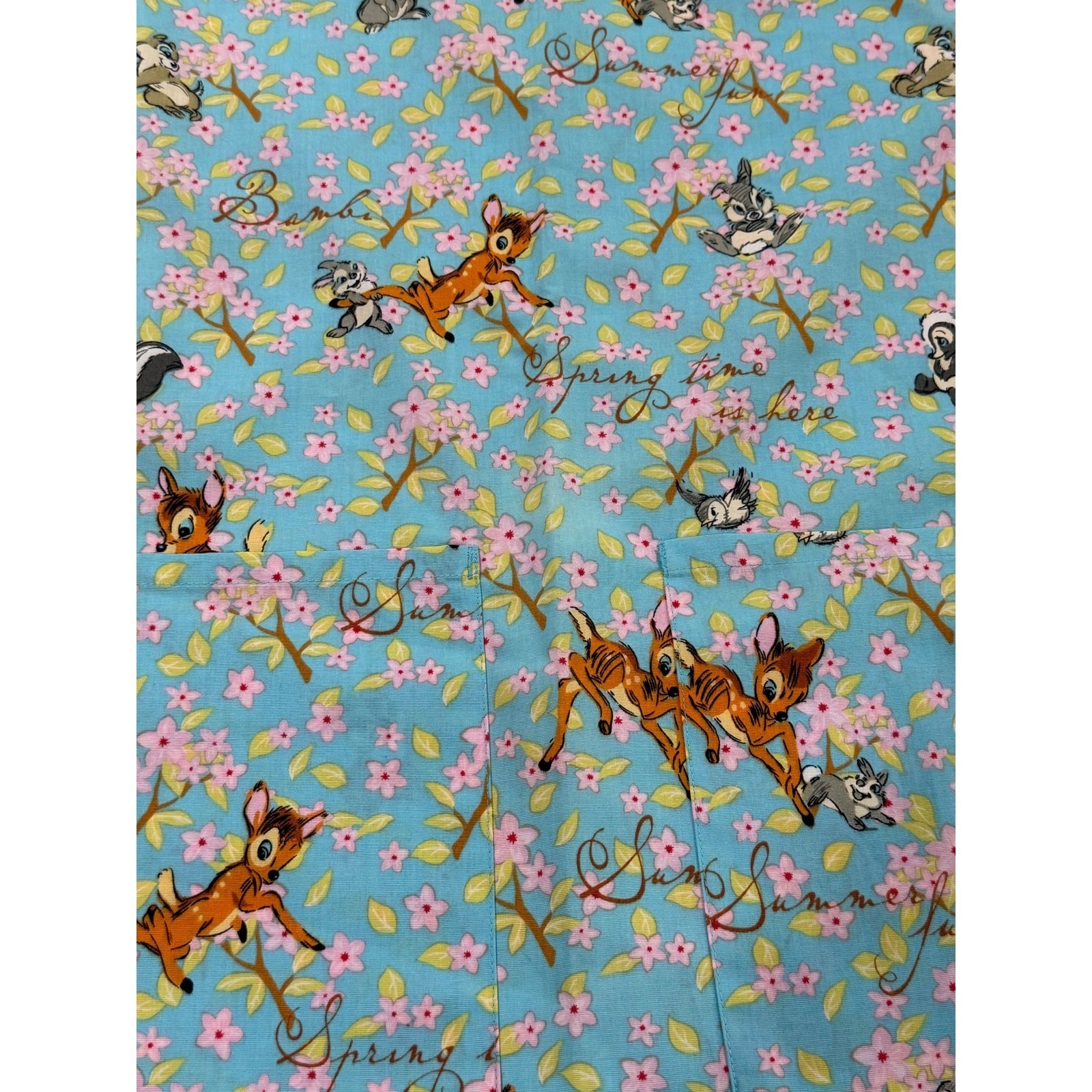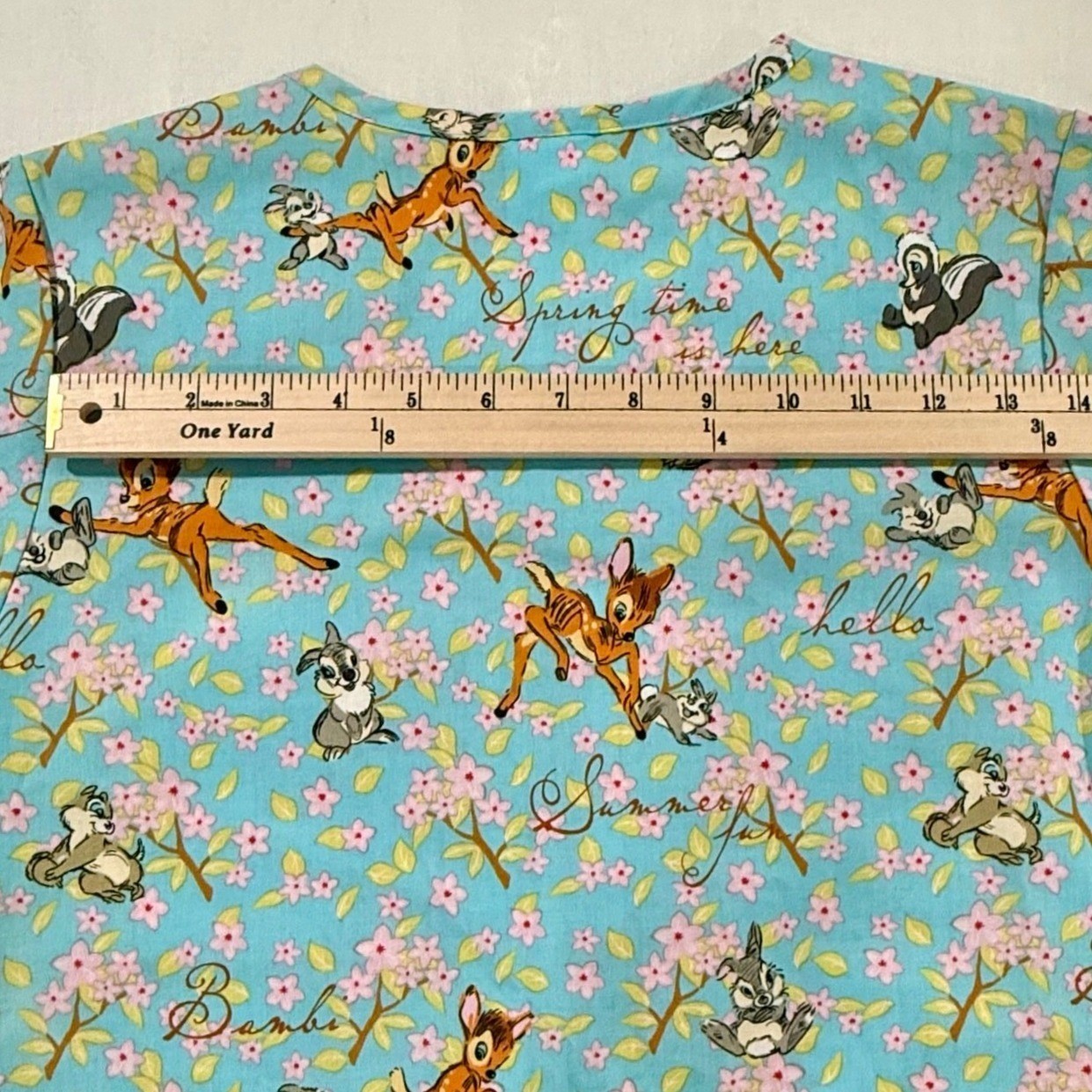Disney Bambi Thumper Flower Scrub Top Blue Medical Uniform Small W47