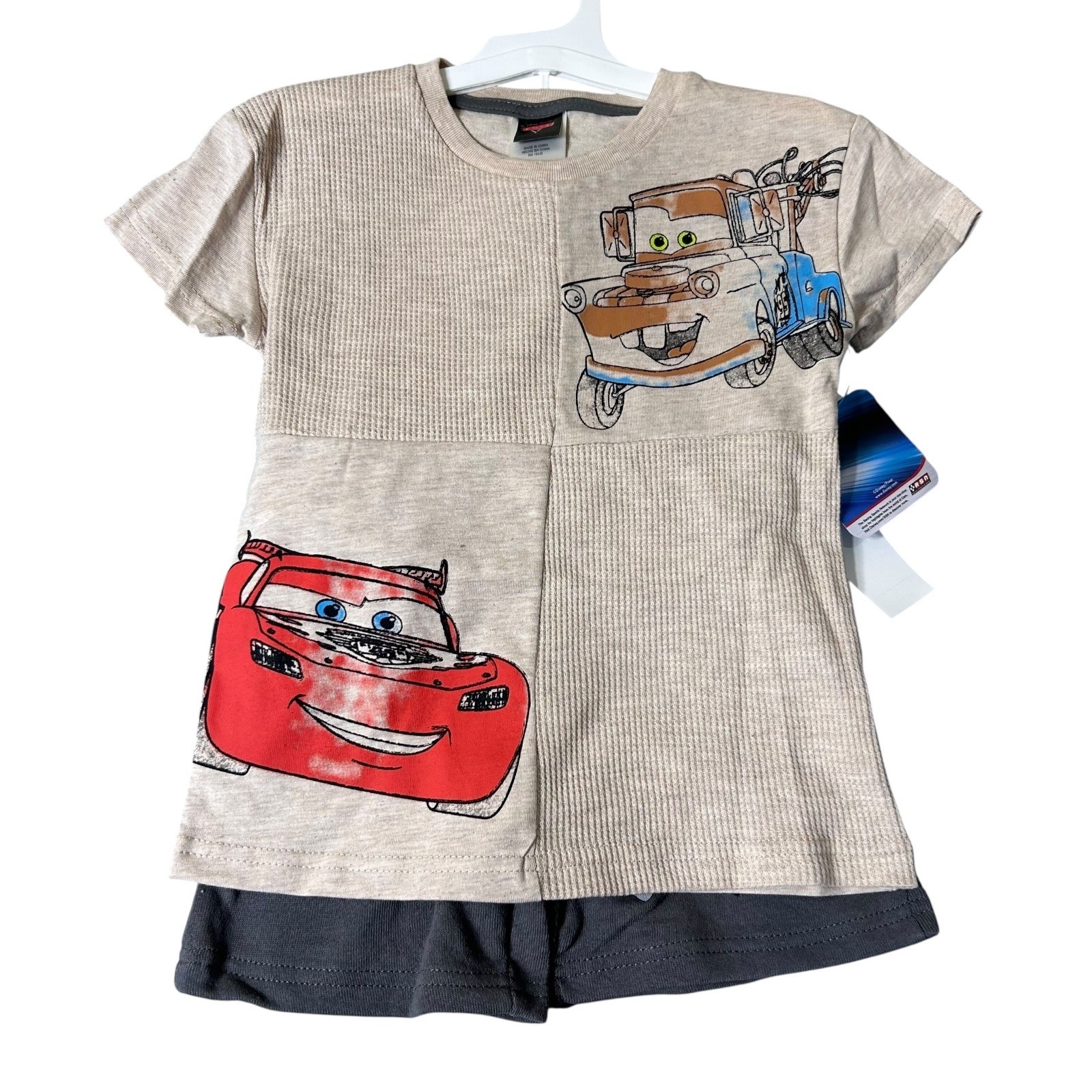 NEW Disney Pixar Cars Short Outfit Set Boy 4T Beige Gray Lightning McQueen Mater