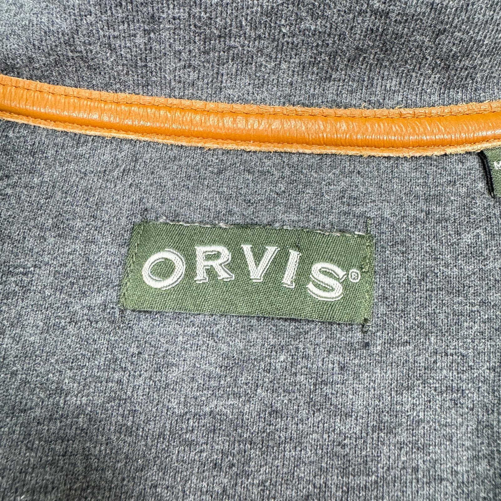 ORVIS Quarter Zip Pullover Sweater Mens XXL Tan Heather Leather Elbow Patches