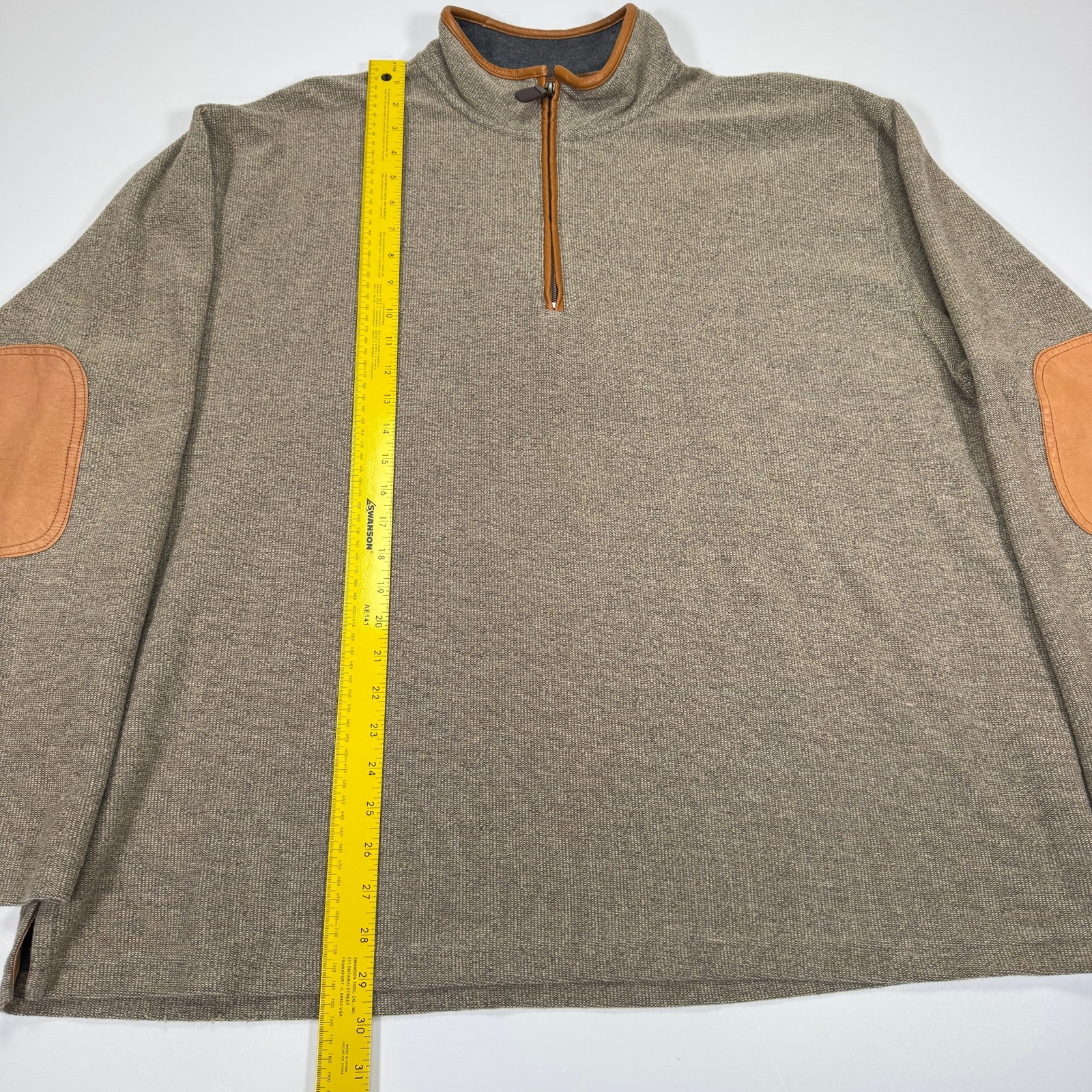 как выглядит ORVIS Quarter Zip Pullover Sweater Mens XXL Tan Heather Leather Elbow Patches фото