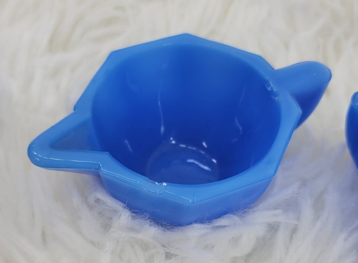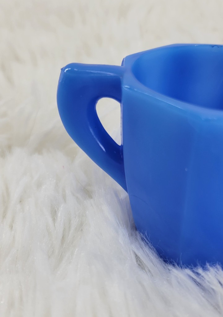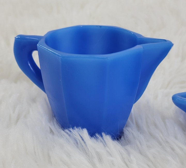 Vintage Akro Agate Blue Slag Glass Childrens 3 Piece Toy Tea Set Art Deco READ