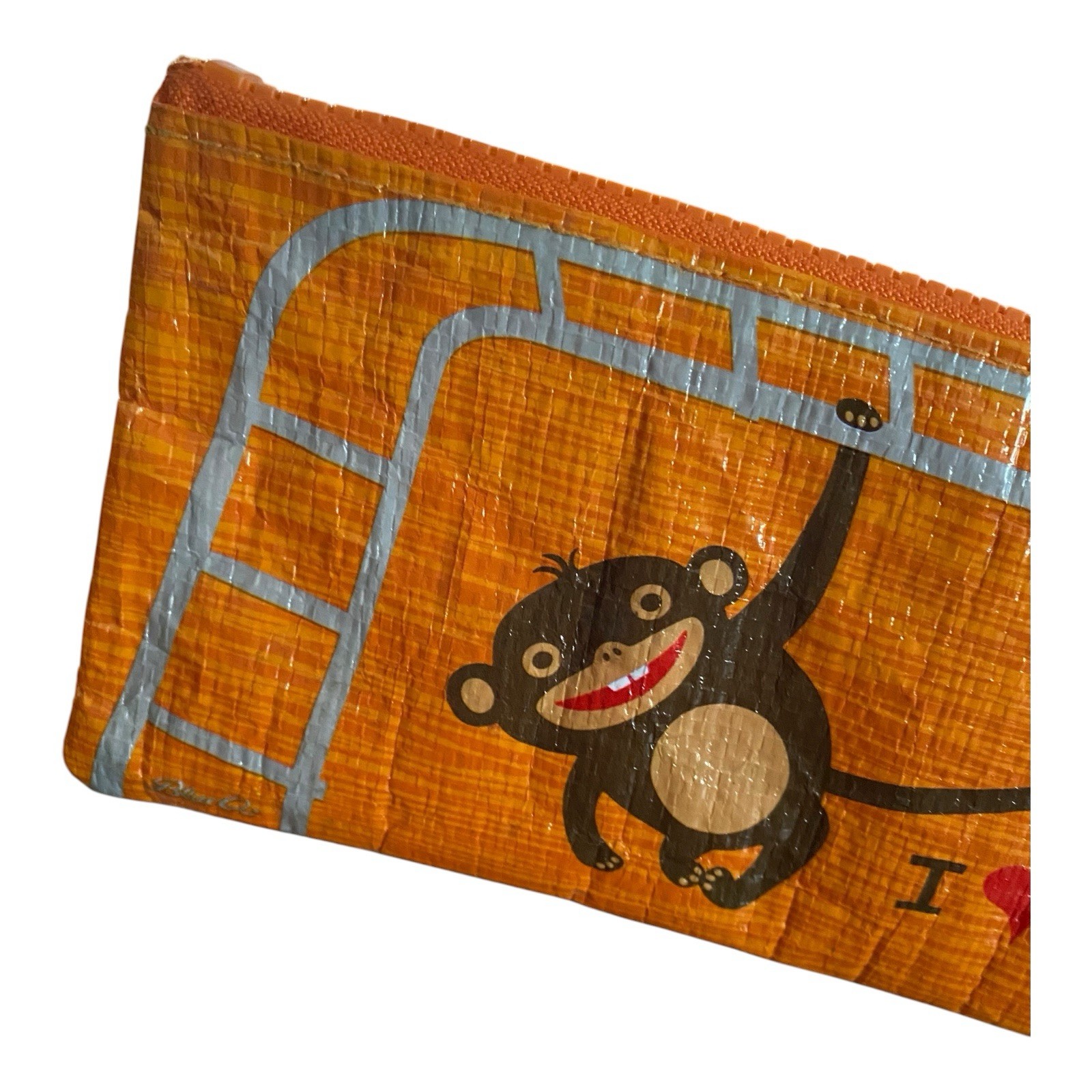 I Love Recess Blue Q Pencil Case Storage Bag Orange Zip Makeup Bag Monkey