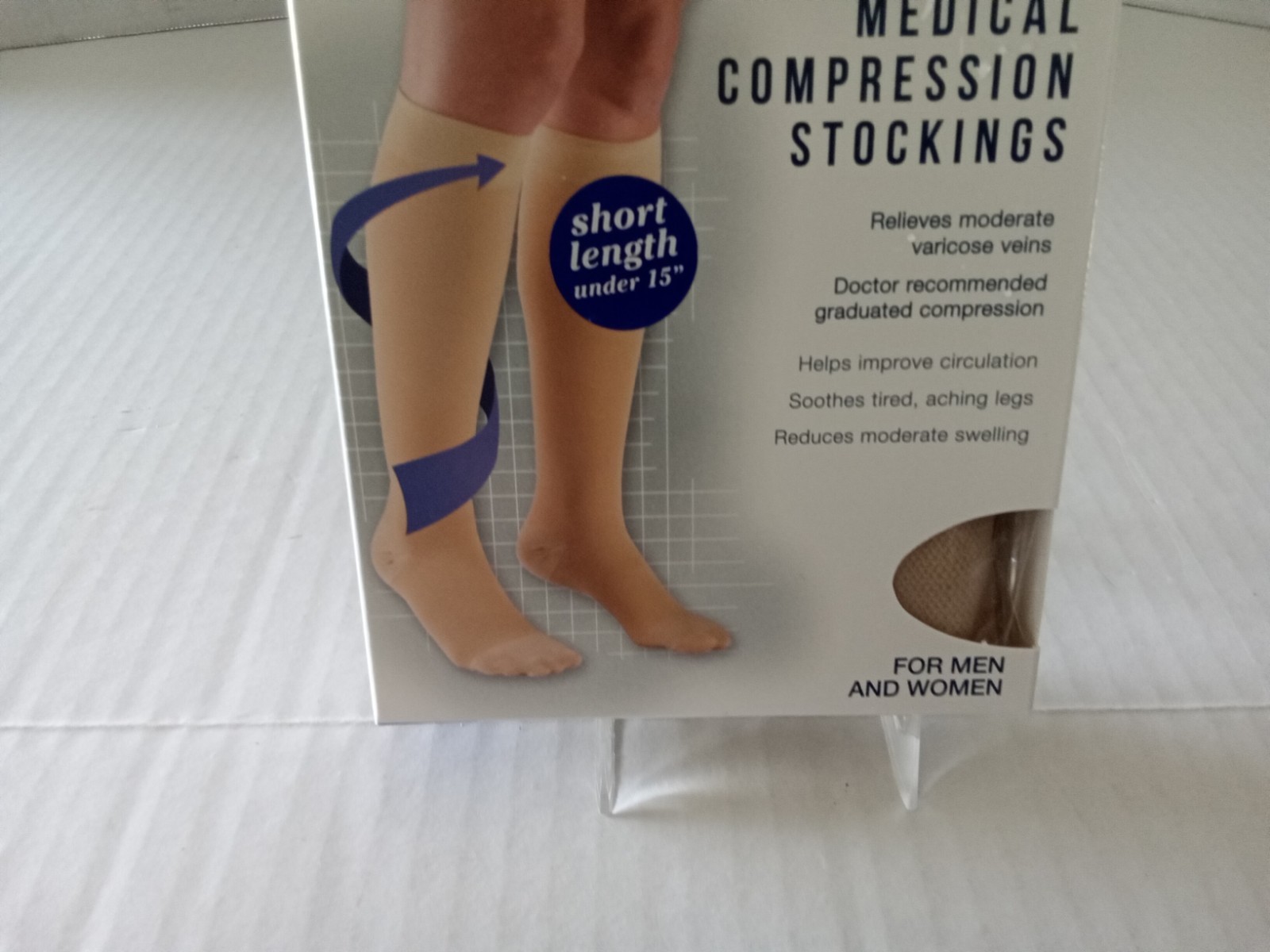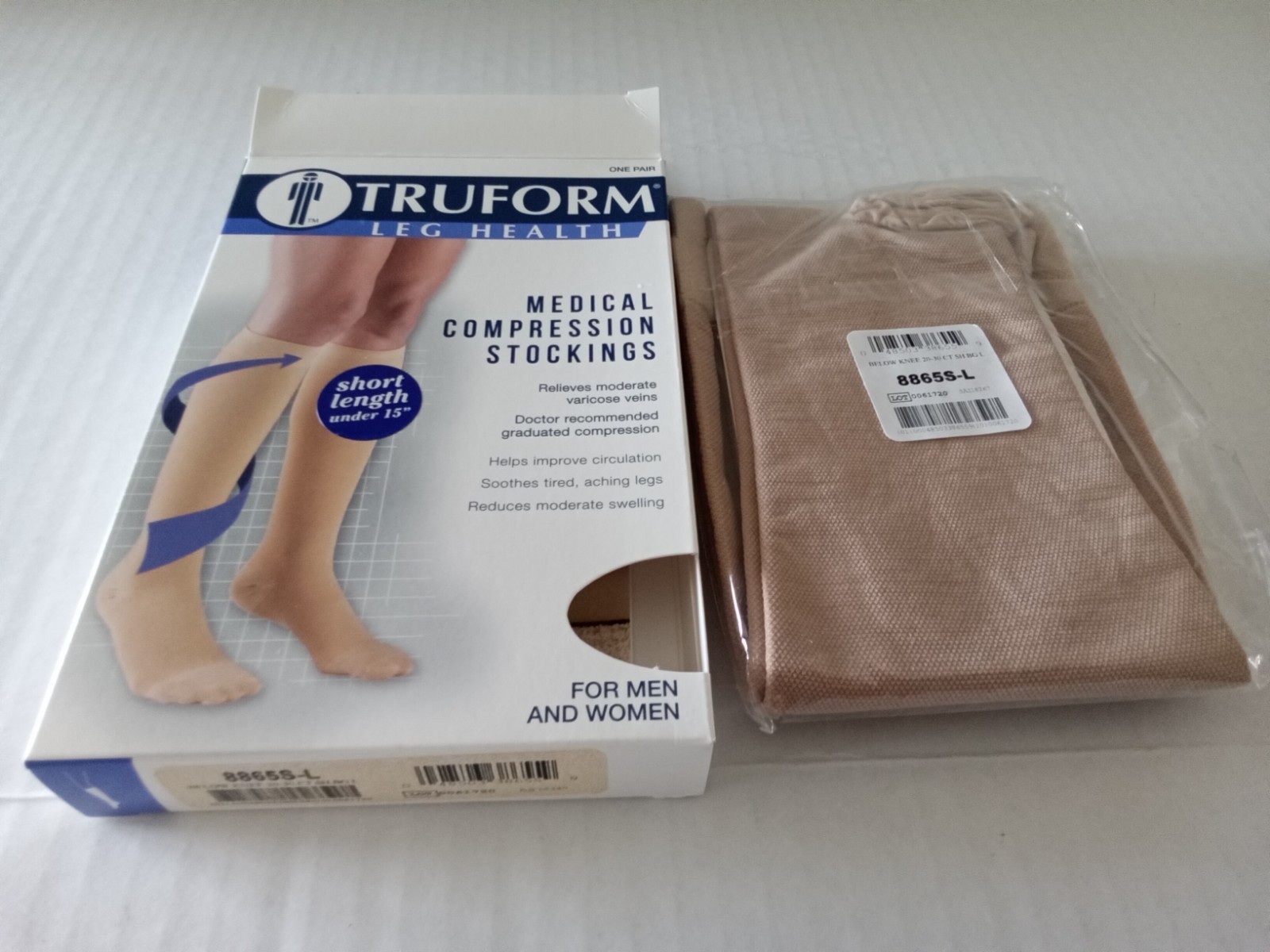 Truform 20-30 mmHg Below Knee Compression Stockings Large Closed Toe Beige 8865