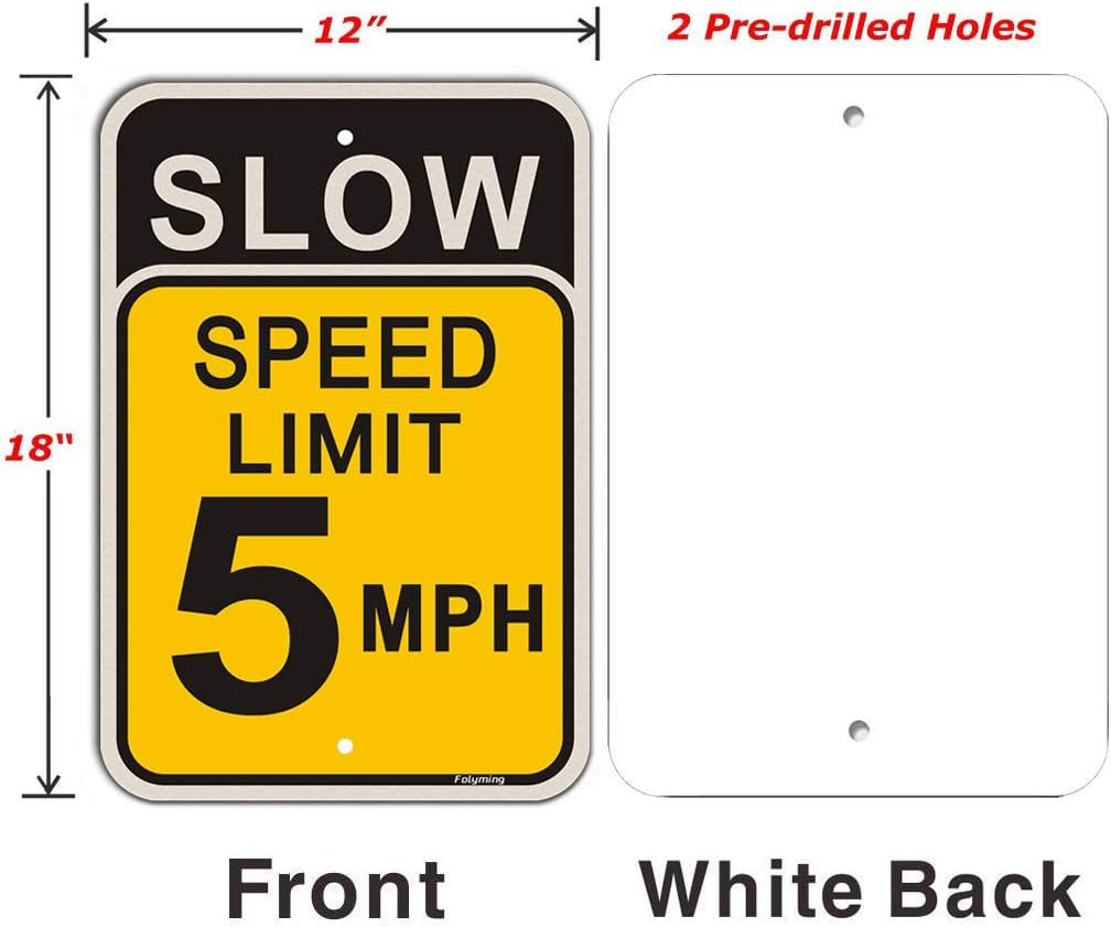 2 Pack Slow Speed Limit 5 MPH Sign 18 X 12 Inches Engineer Grade Metal Reflectiv