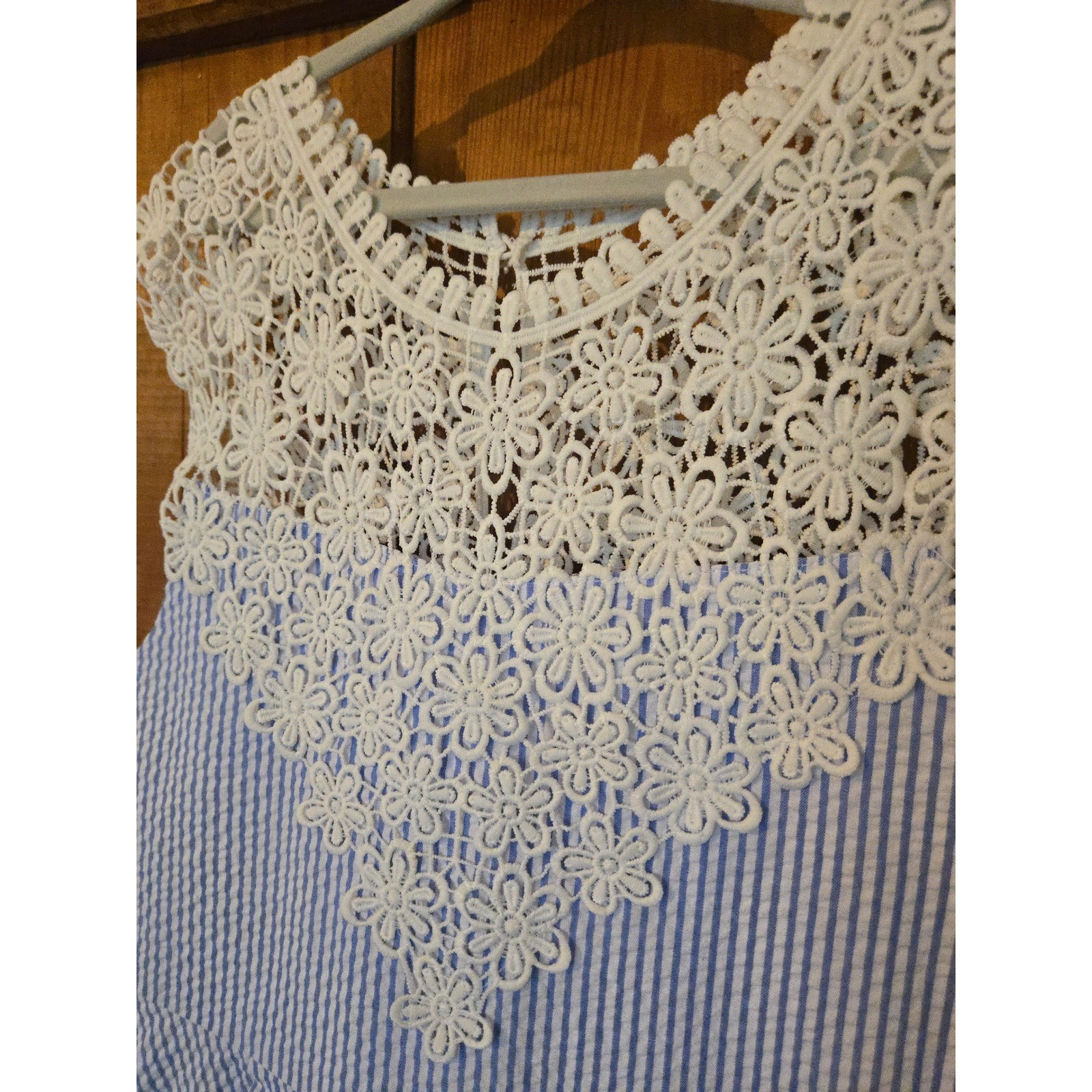 как выглядит RARE EDITIONS Girls Blue White Seersucker Floral Lace Dress Size 10 фото